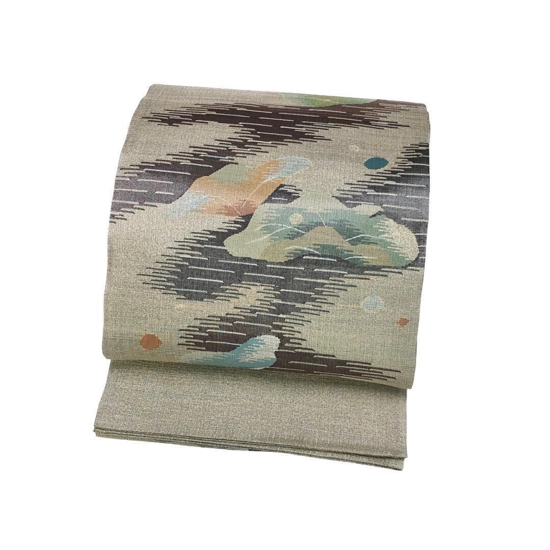 夏帯 袋帯 蓮の葉模様 金銀糸 象牙色 O-5244 着物 きもの kimono 和服 和装 中古 リサイクル着物 【送料無料】