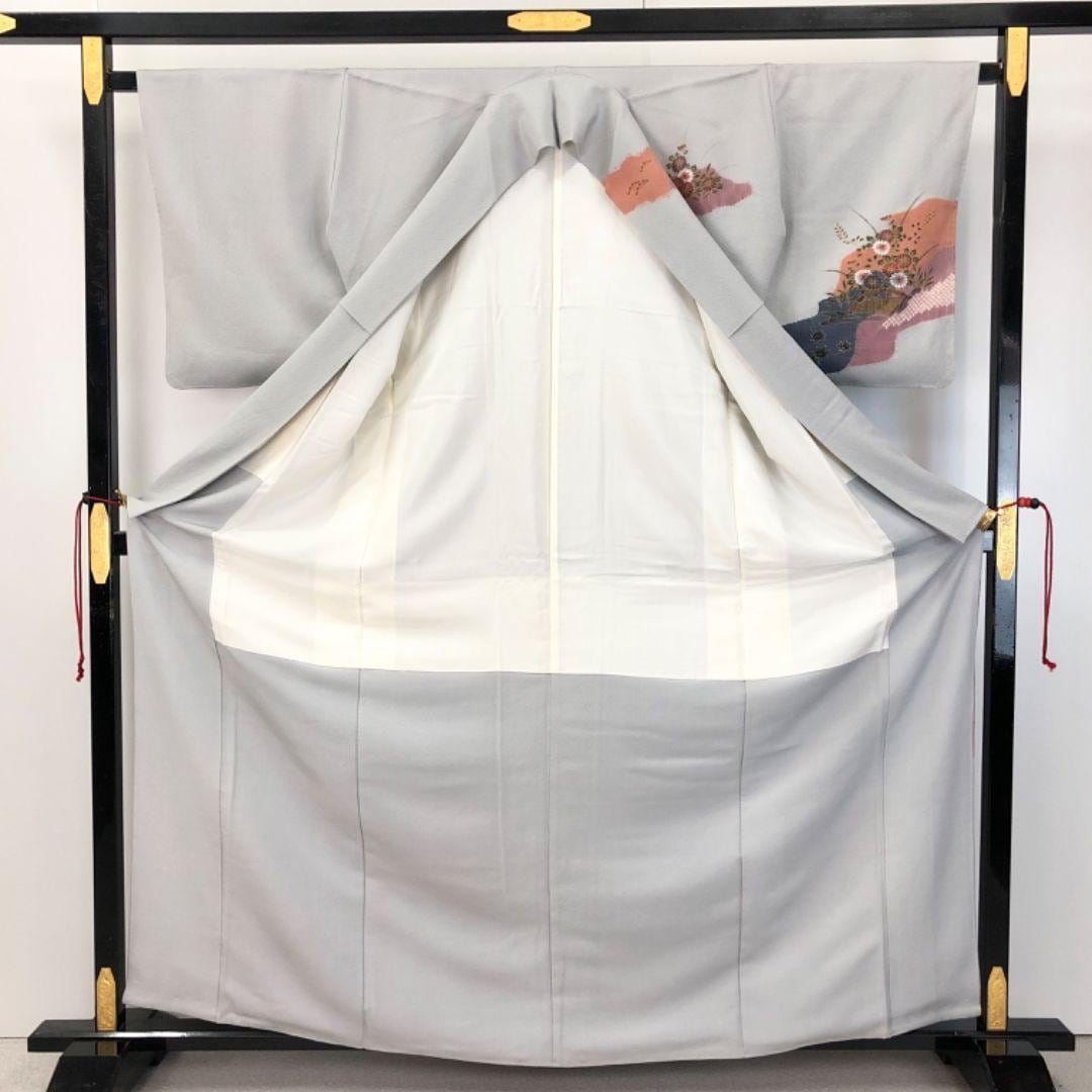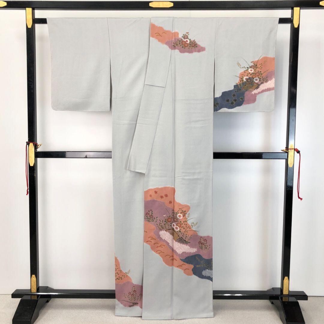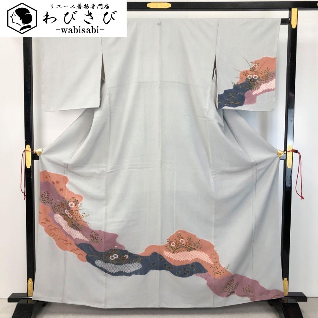 付下げ 絞りの霞模様 花柄模様 水銀色 金彩 K-4954 着物 きもの kimono 和服 和装 中古 リサイクル着物 【送料無料】