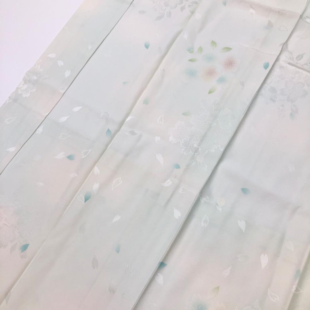 卯の花色のお色味に暈し、優しい色彩の桜の花模様の柄裄がデザインされた素敵なお品でございます。