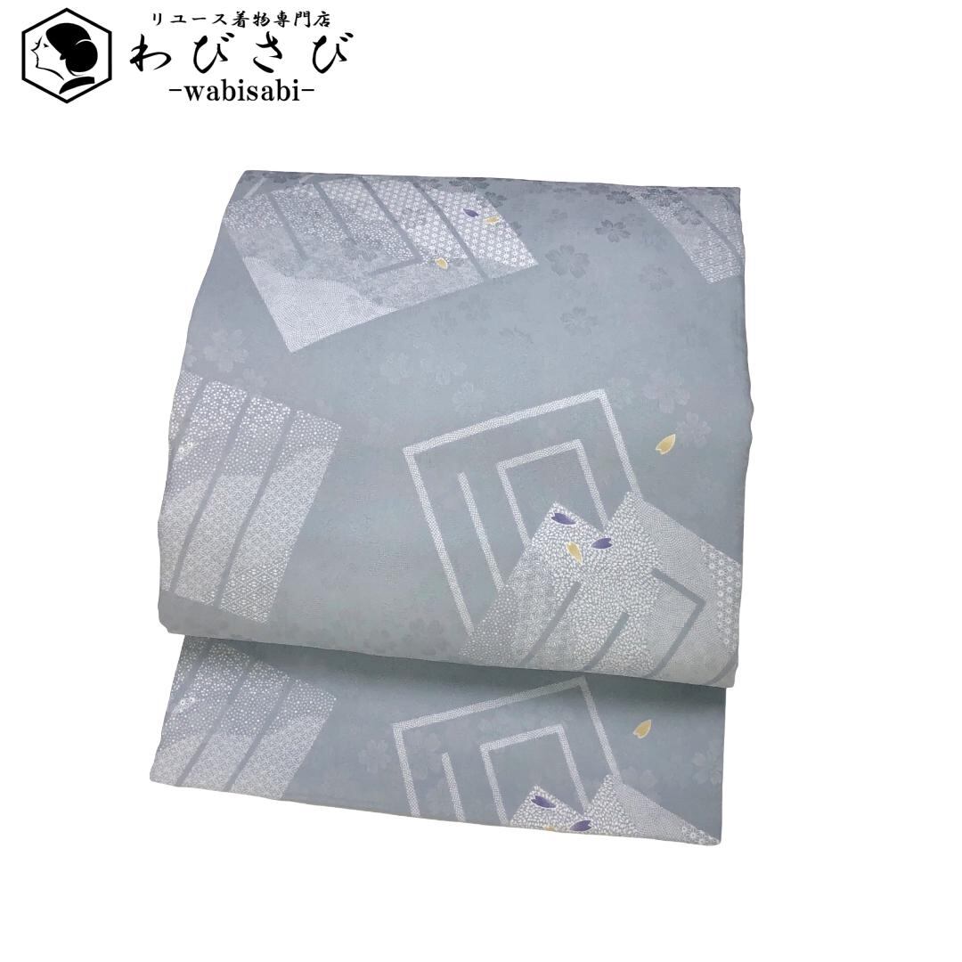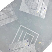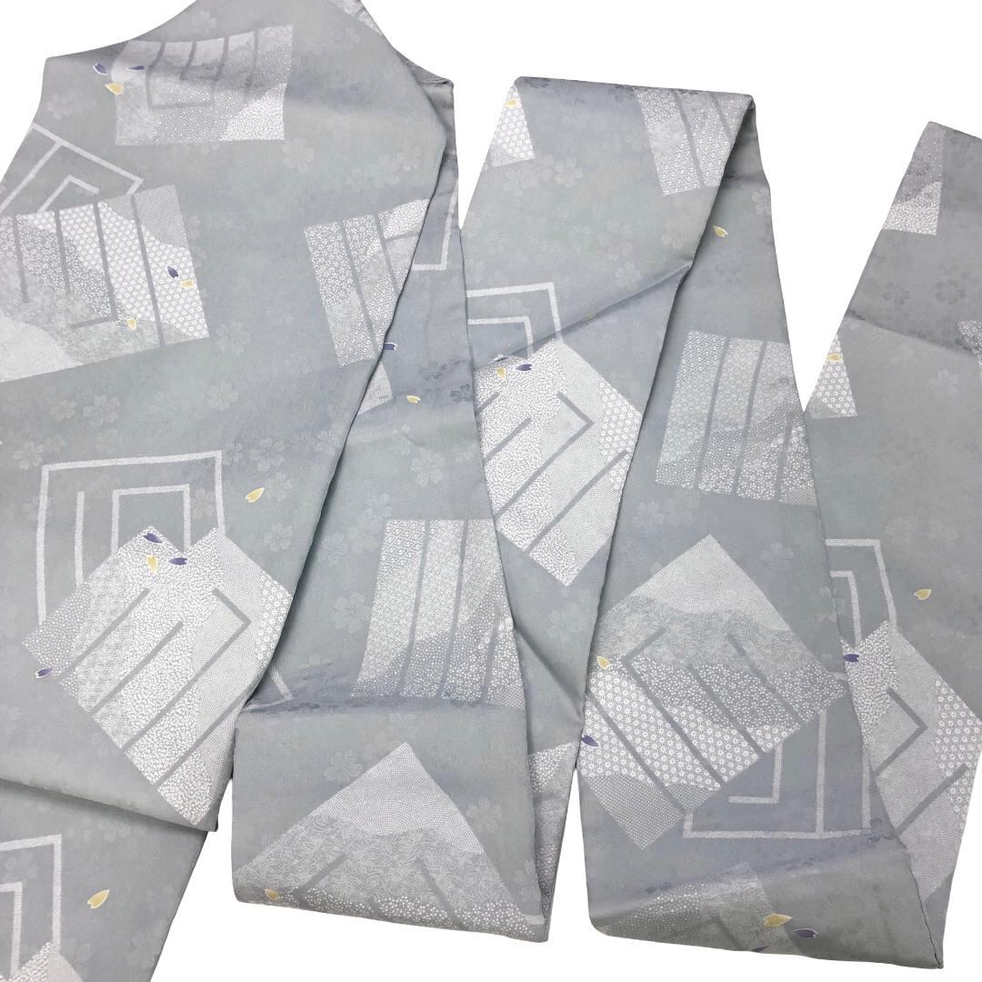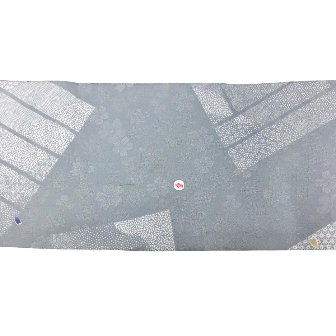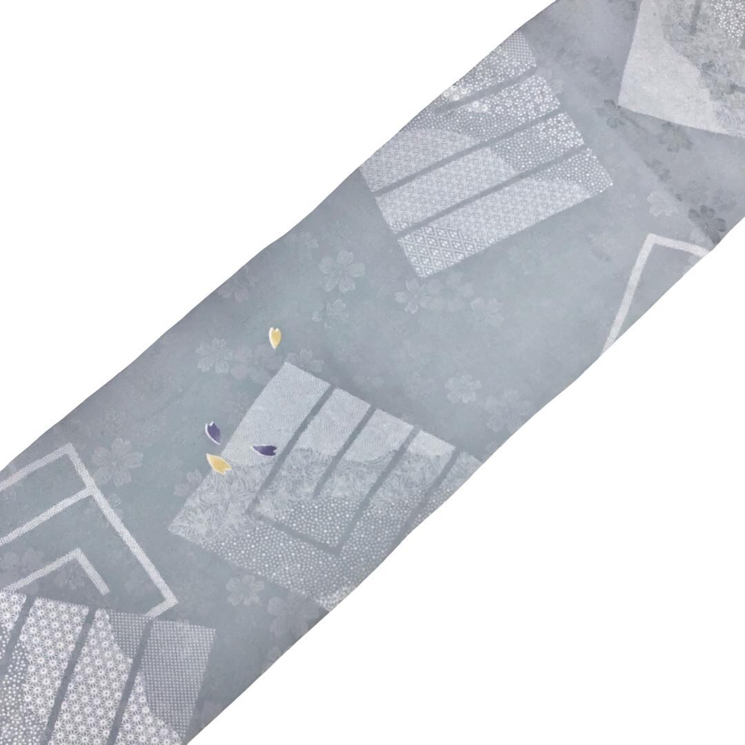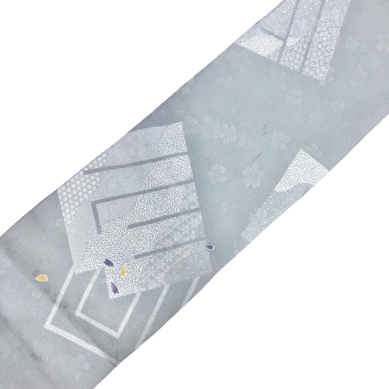 空色鼠色の上品なお色味に源氏香に桜の花びらがデザインされた素敵な柄裄のお品でございます。