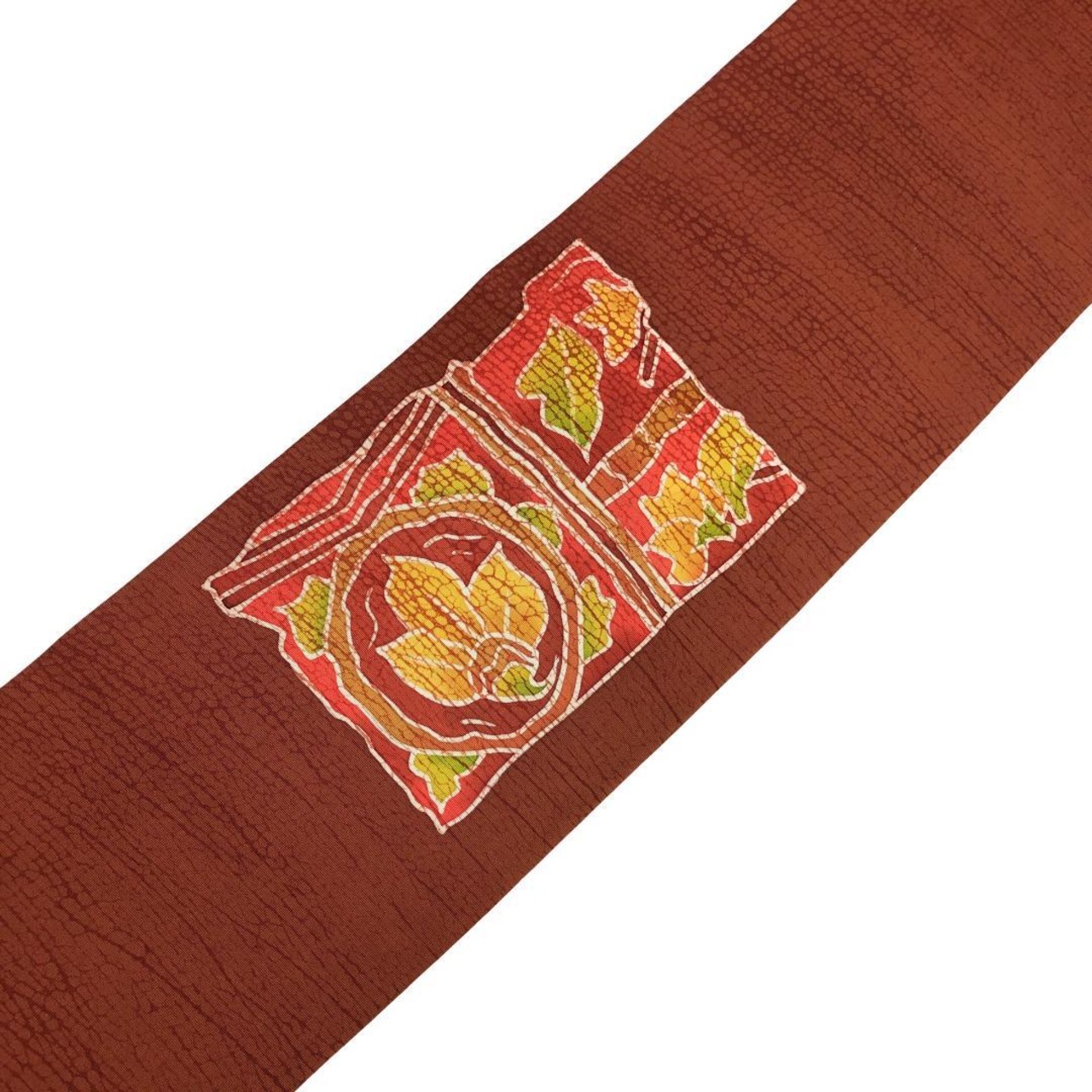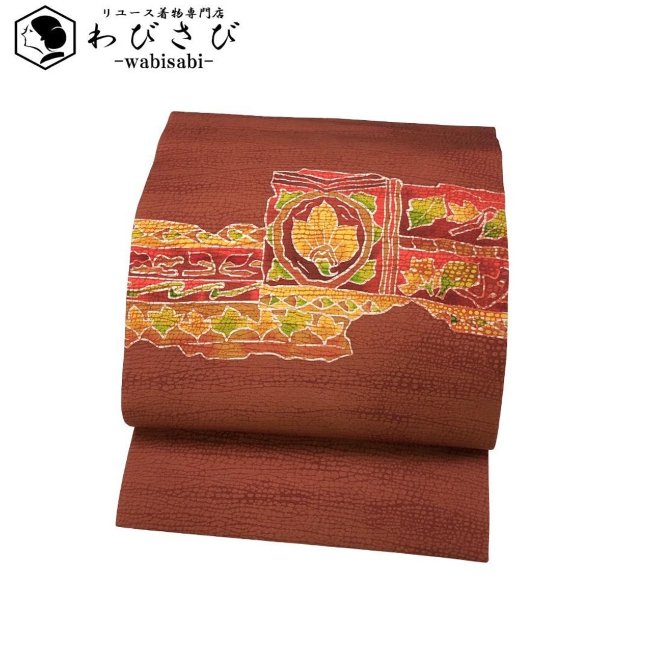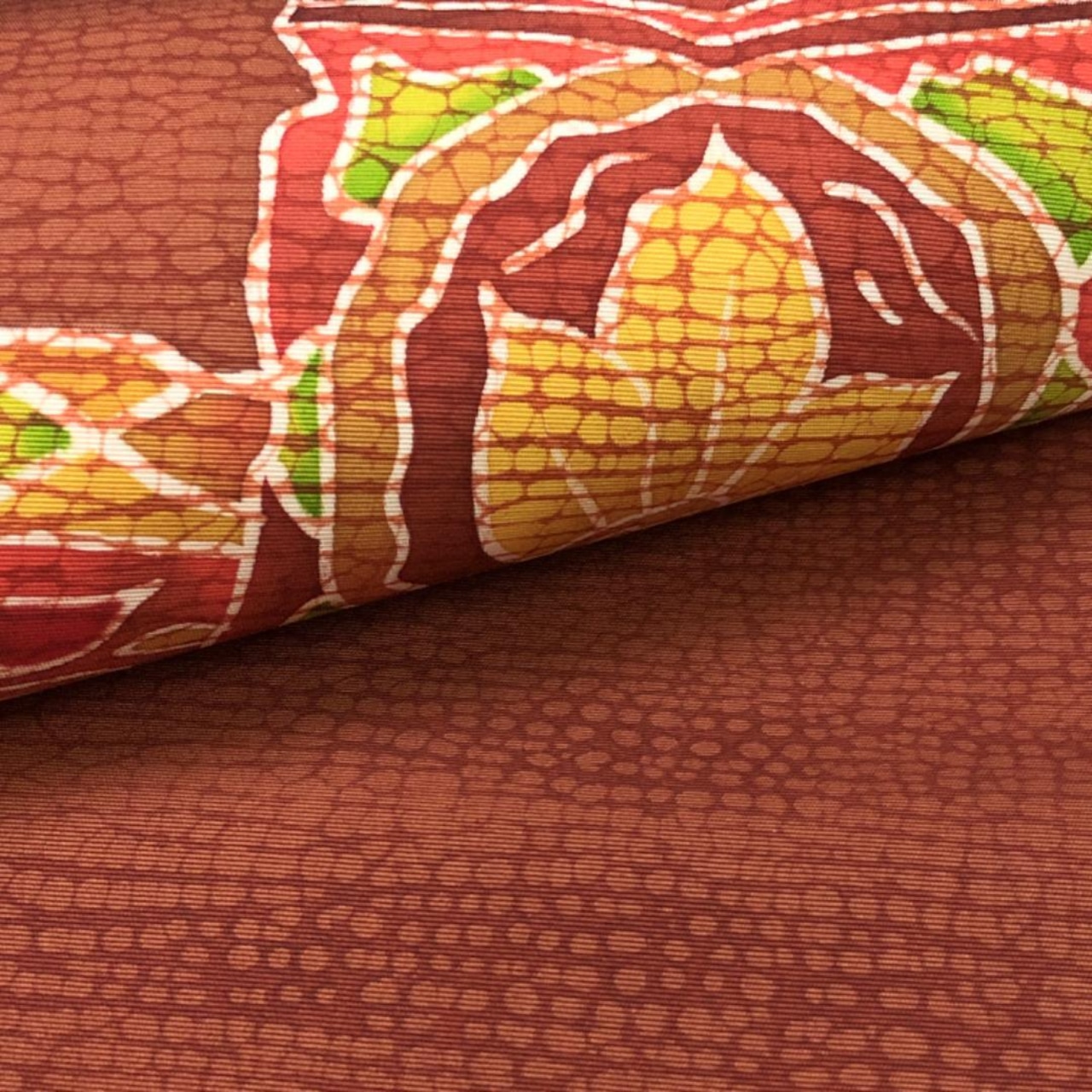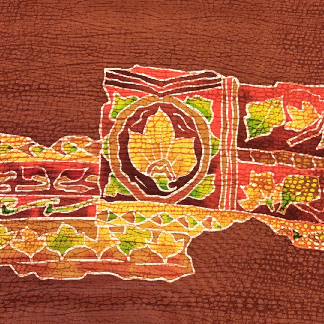 赤蘇芳色ベースのお色味に抽象花唐草模様がデザインされた素敵な柄裄のお品でございます。