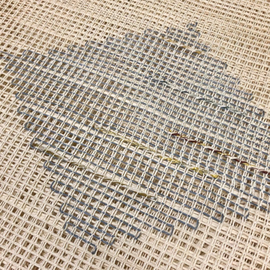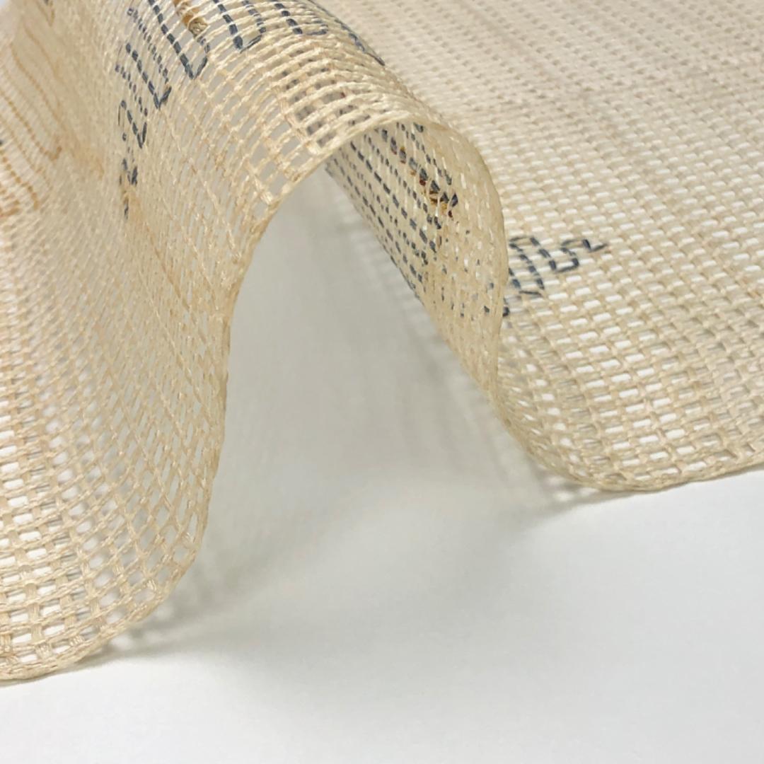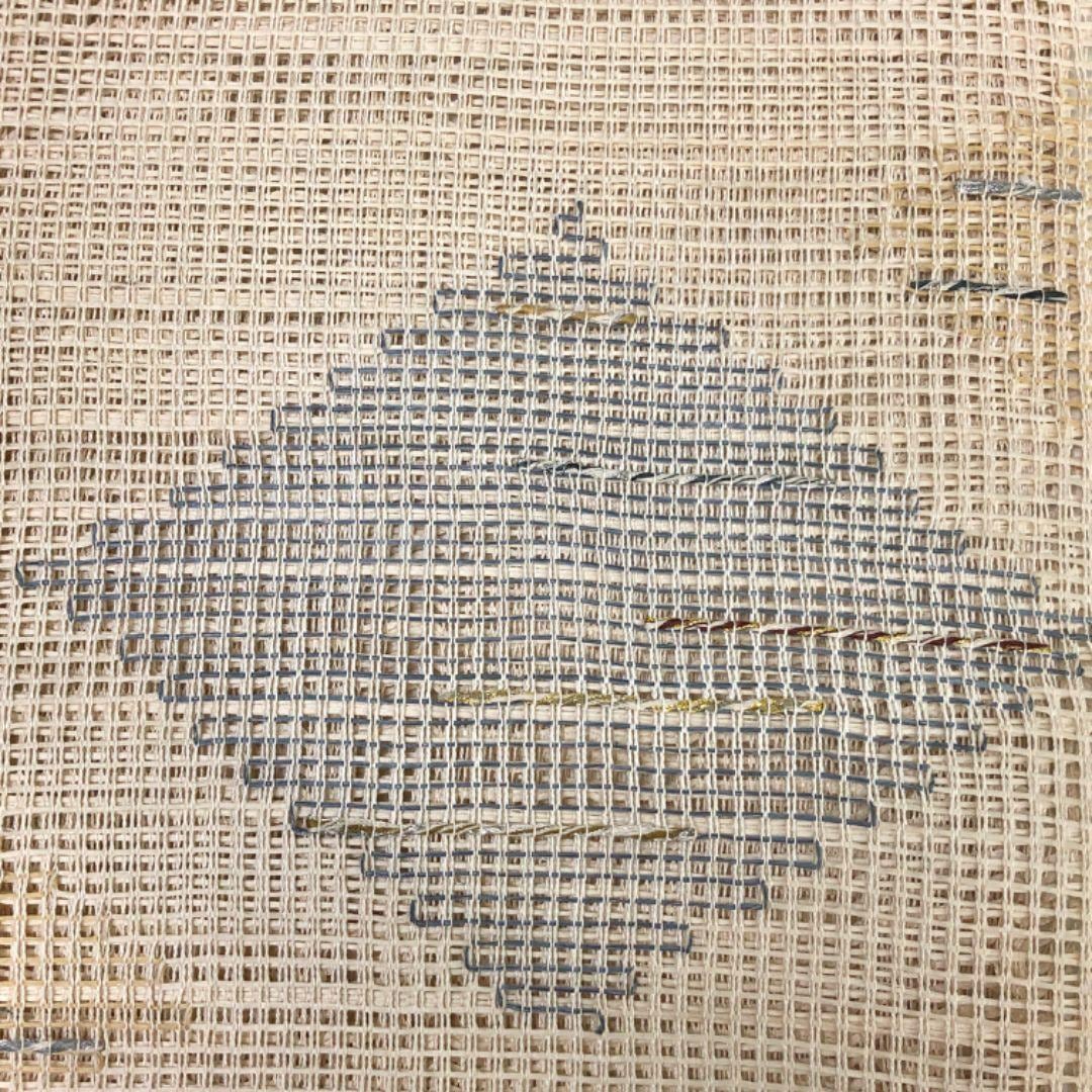 薄卵色のお色味に菱形模様がデザインされた羅の透け感のある素敵なお品でございます。