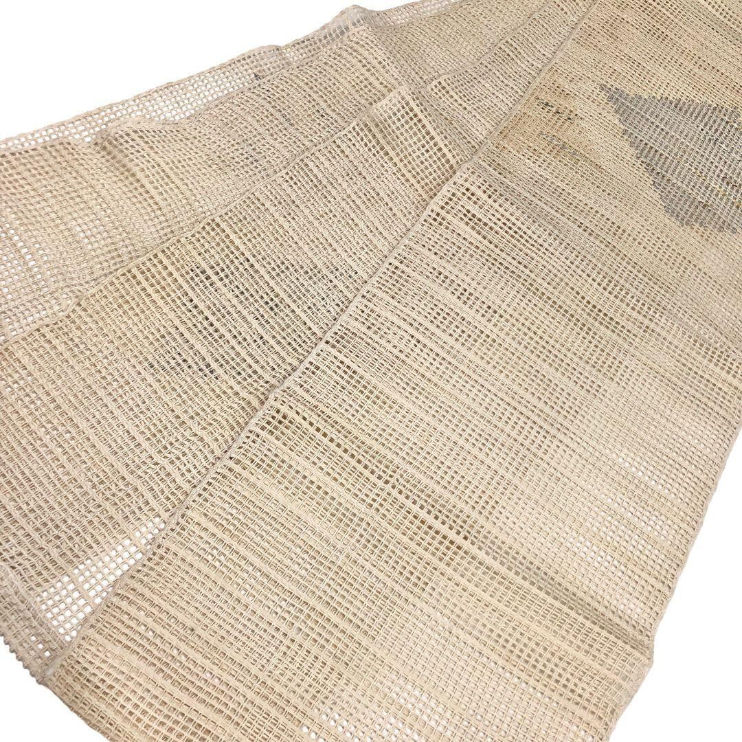 夏帯 名古屋帯 羅 菱形模様 金銀糸 薄卵色 長尺 O-5223 着物 きもの kimono 和服 和装 中古 リサイクル着物 【送料無料】
