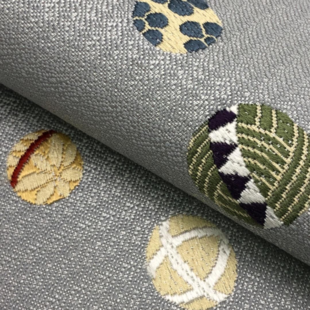 銀鼠色のお色味にかわいい彩り豊かな手毬の柄裄がデザインされた素敵なお品でございます。