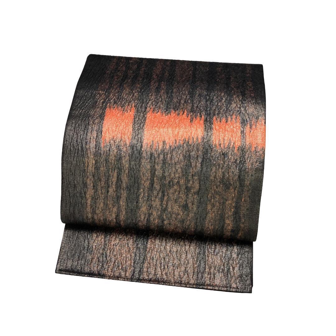 袋帯 膨れ織 抽象模様 杉染色 O-5219 着物 きもの kimono 和服 和装 中古 リサイクル着物 【送料無料】