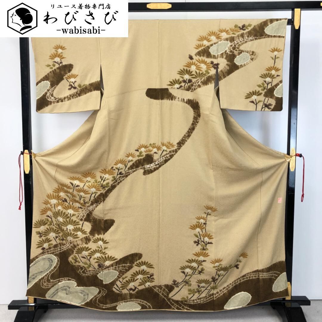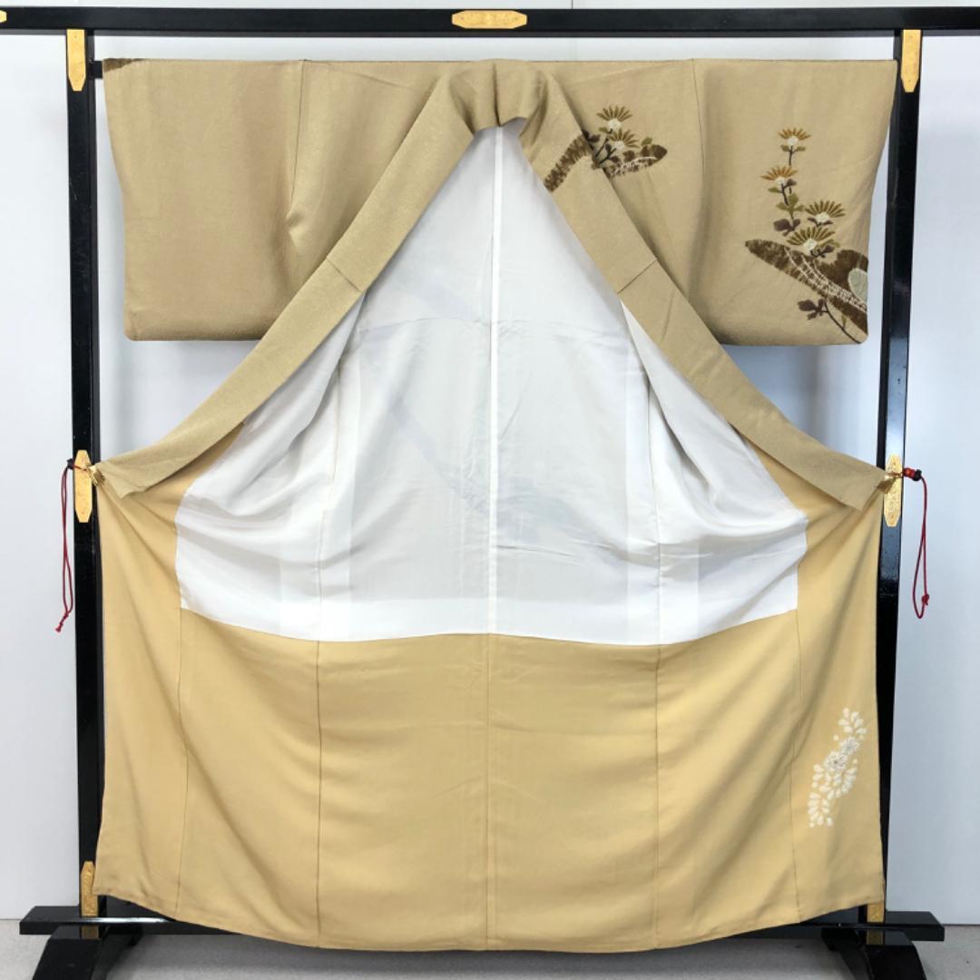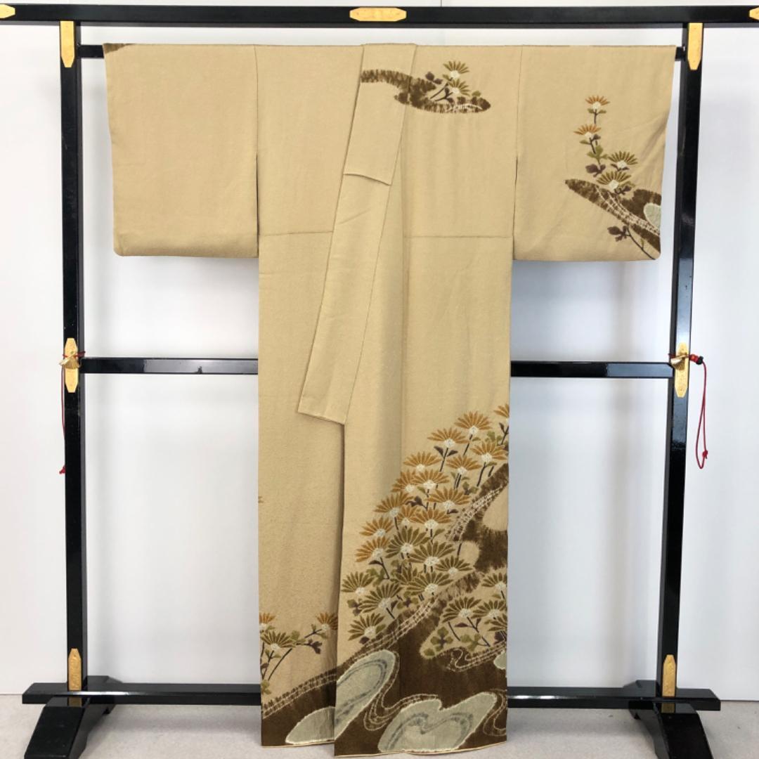 枯野色の落ち着きのあるお色味に雰囲気のある美しい絞りの花模様がデザインされた素敵な柄裄のお品でございます。