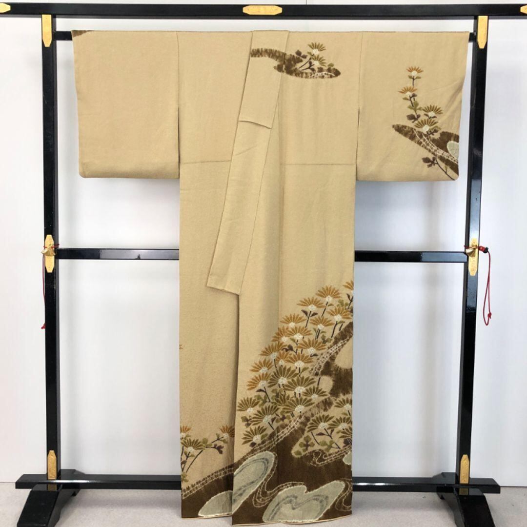 訪問着 十日町滝泰 美しい絞りの花模様 枯野色 K-5019 着物 きもの kimono 和服 和装 中古 リサイクル着物 【送料無料】