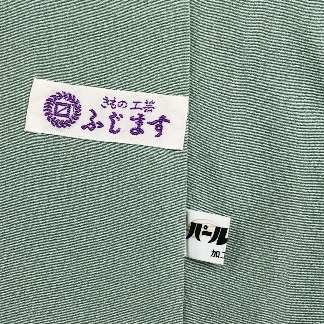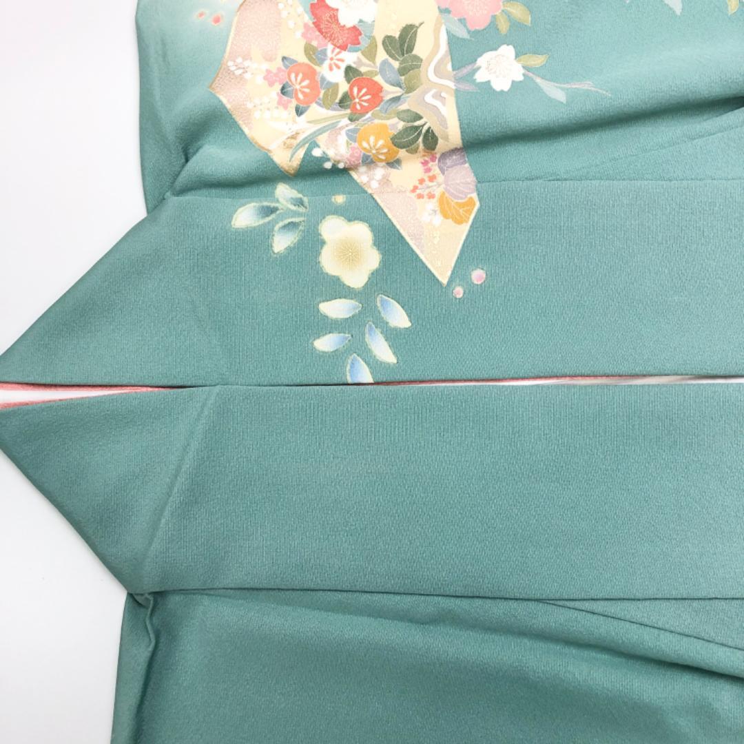 裏葉色ベースのお色味に華やかで美しい四季の花模様の柄裄がデザインされた素敵なお品でございます。
