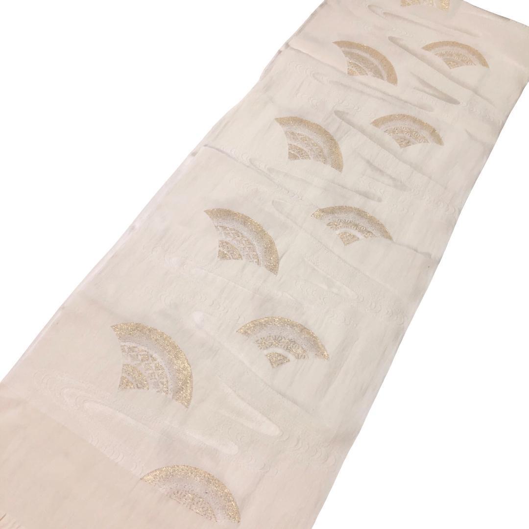 乳白色のお色味に金糸で地紙の柄裄がデザインされた素敵なお品でございます。