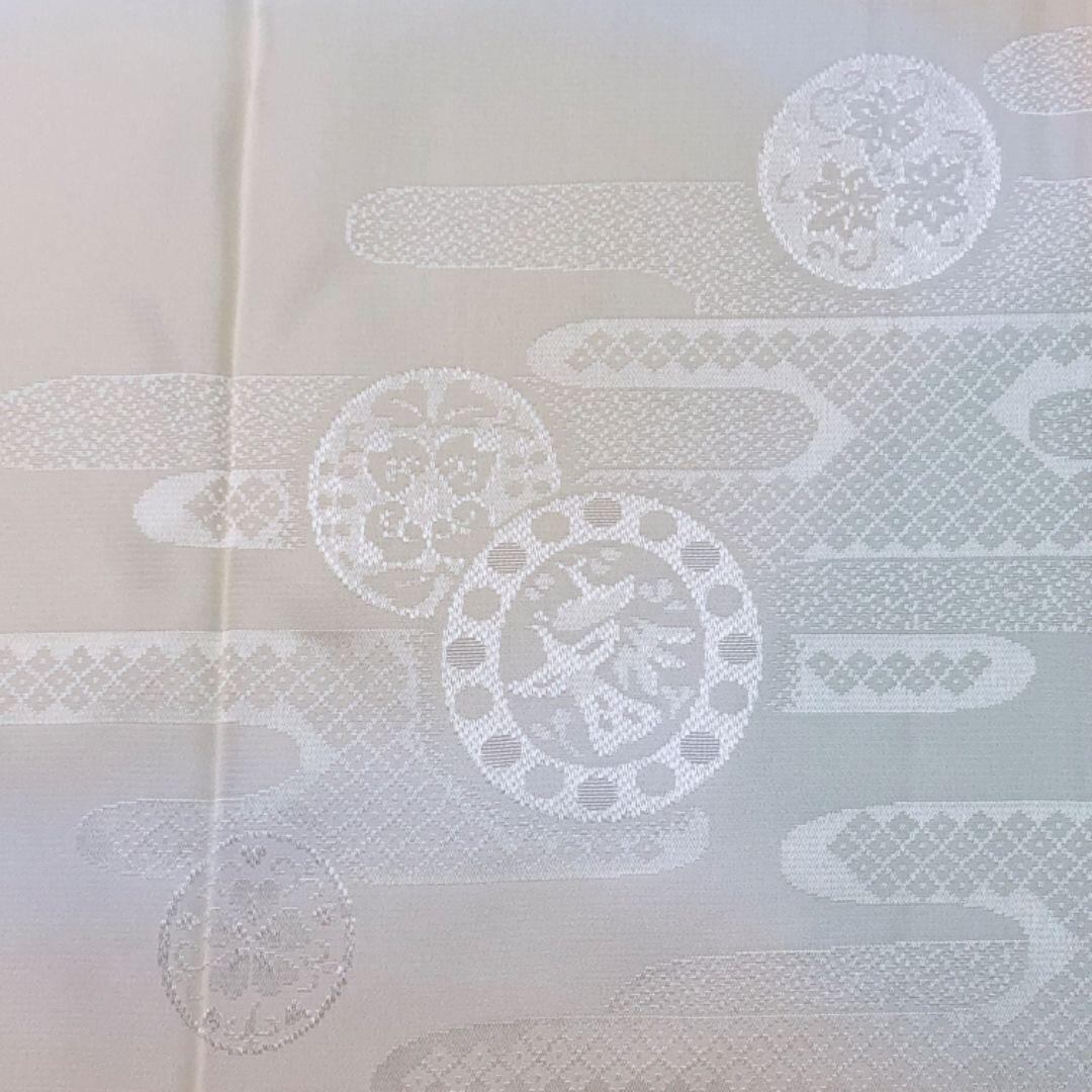 麹色のお色味に丸に抽象模様の柄裄がデザインされた素敵なお品でございます。