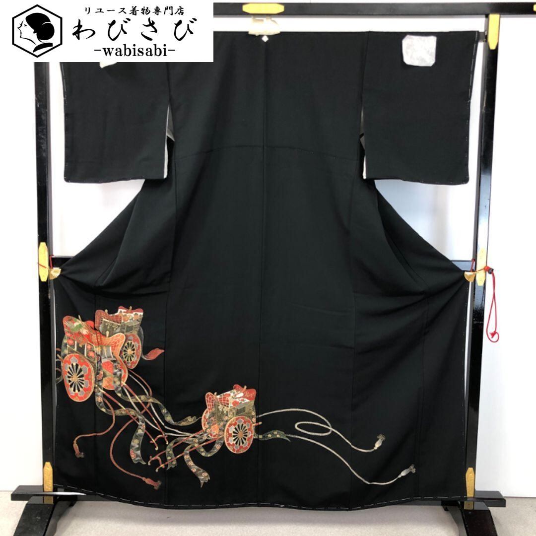 黒留袖 御所車 組紐 金糸 しつけ糸 K-4997 着物 きもの kimono 和服 和装 中古 リサイクル着物 【送料無料】