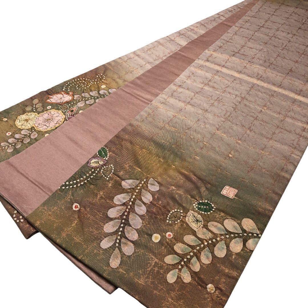 袋帯 作家物 辻が花模様 金糸 胡桃色 O-5235 着物 きもの kimono 和服 和装 中古 リサイクル着物 【送料無料】
