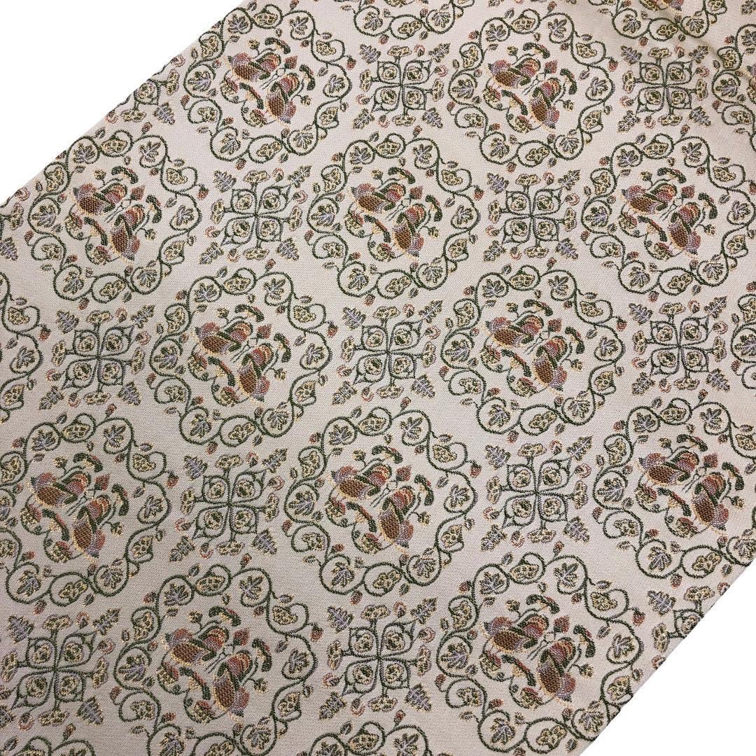 生成色のお色味に雰囲気の良い向かい鳥に花唐草模様の柄裄がデザインされた素敵なお品でございます。