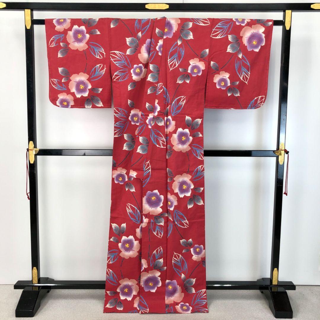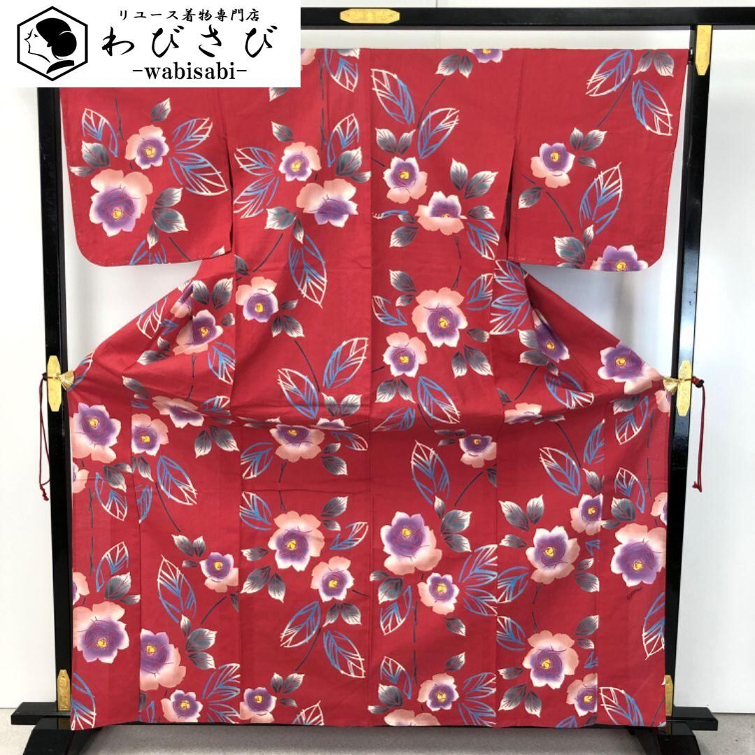 夏着物 浴衣 花柄模様 洋紅色 トールサイズ K-5030 着物 きもの kimono 和服 和装 中古 リサイクル着物 【送料無料】