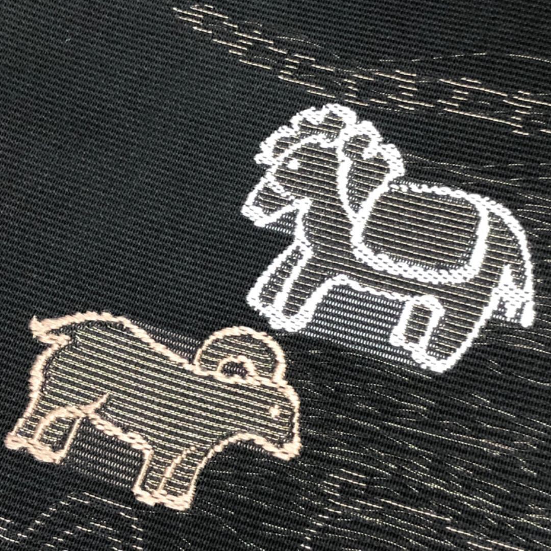 黒色のお色味に可愛らしい十二支、干支の動物の柄行がデザインされた素敵なお品でございます。