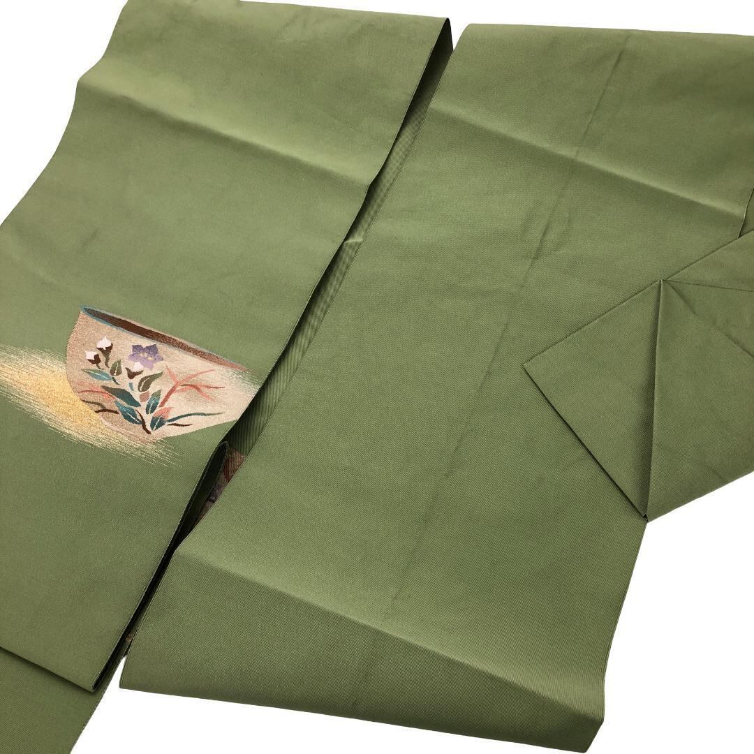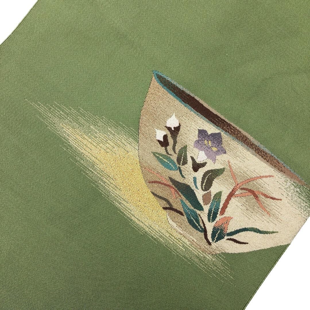 抹茶色の雰囲気の良いお色味にお椀に花模様の柄裄がデザインされた品のある素敵なお品でございます。