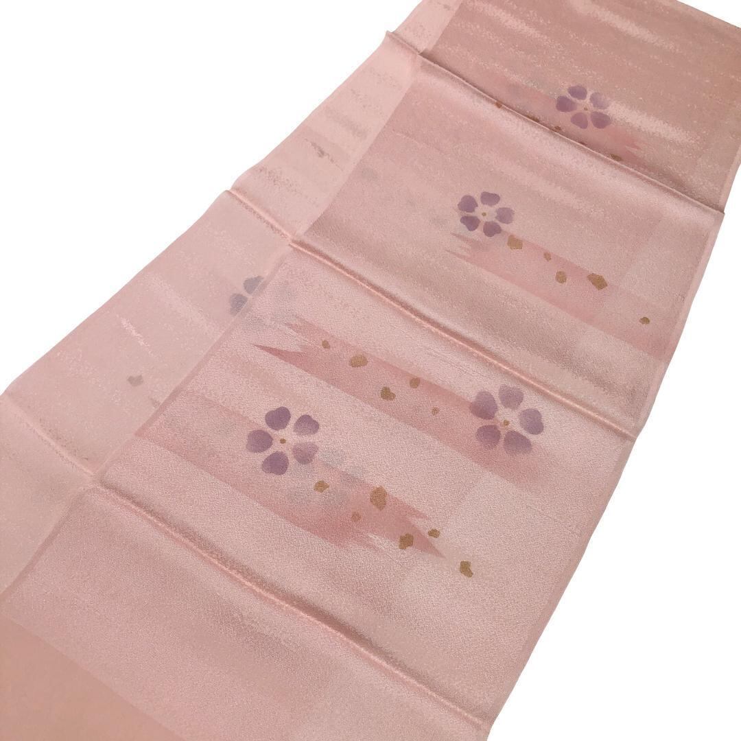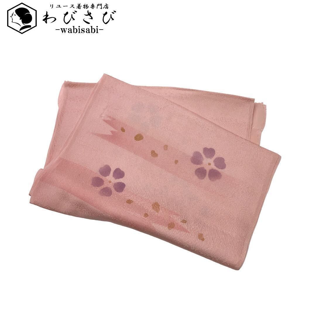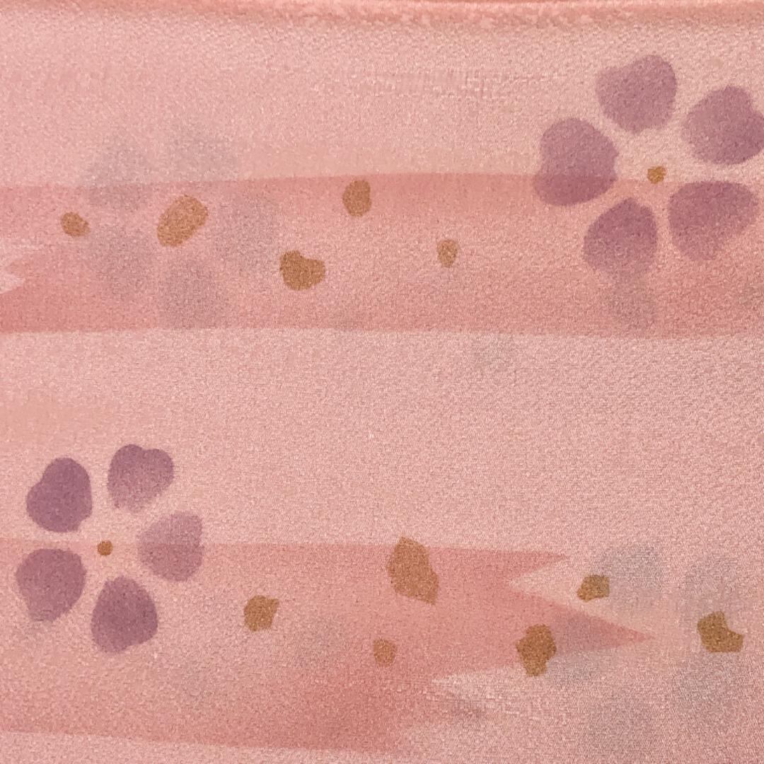 薄桃染色のお色味に霞に花模様の柄裄がデザインされた素敵なお品でございます。