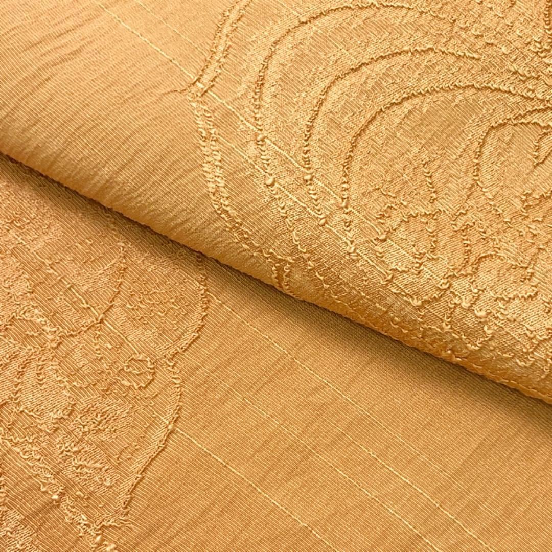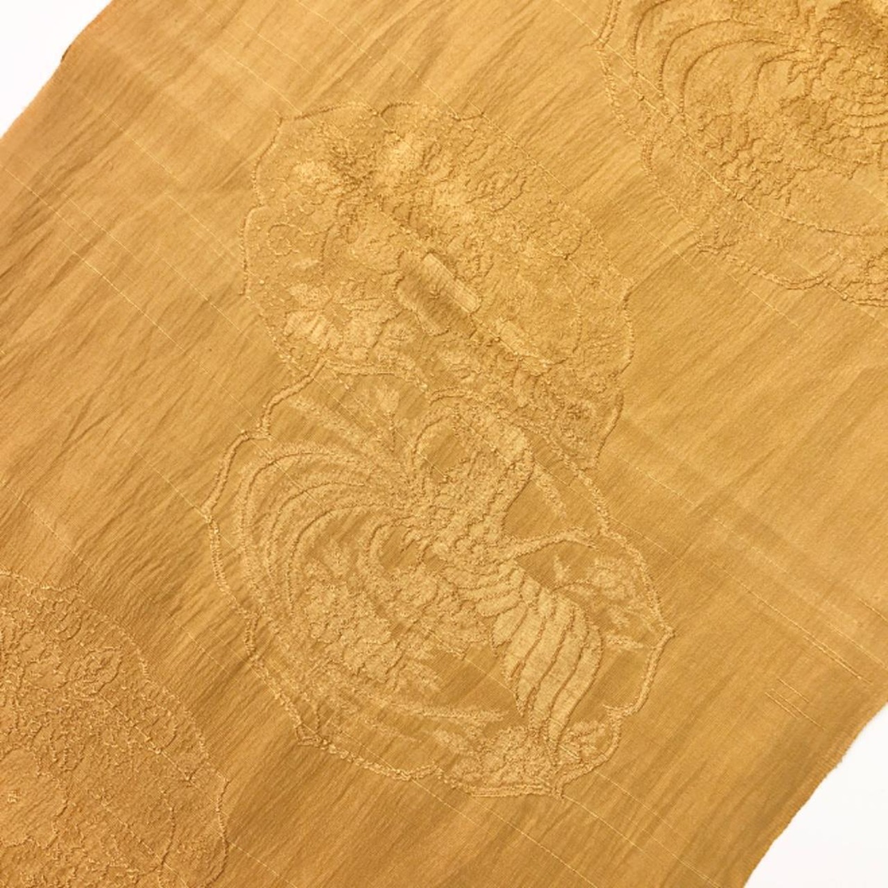 黄土色のお色味に鳳凰に花模様の柄裄がデザインされた素敵なお品でございます。