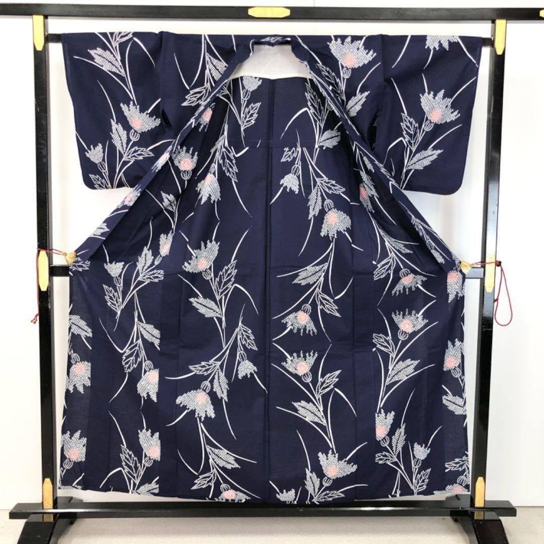 夏着物 浴衣 花模様 紫紺色 K-5038 着物 きもの kimono 和服 和装 中古 リサイクル着物 【送料無料】