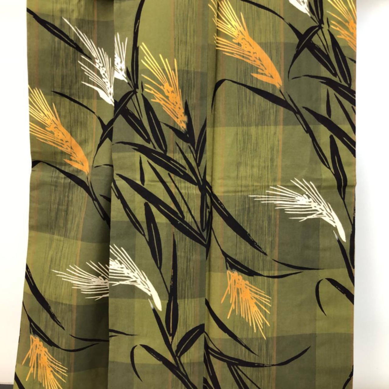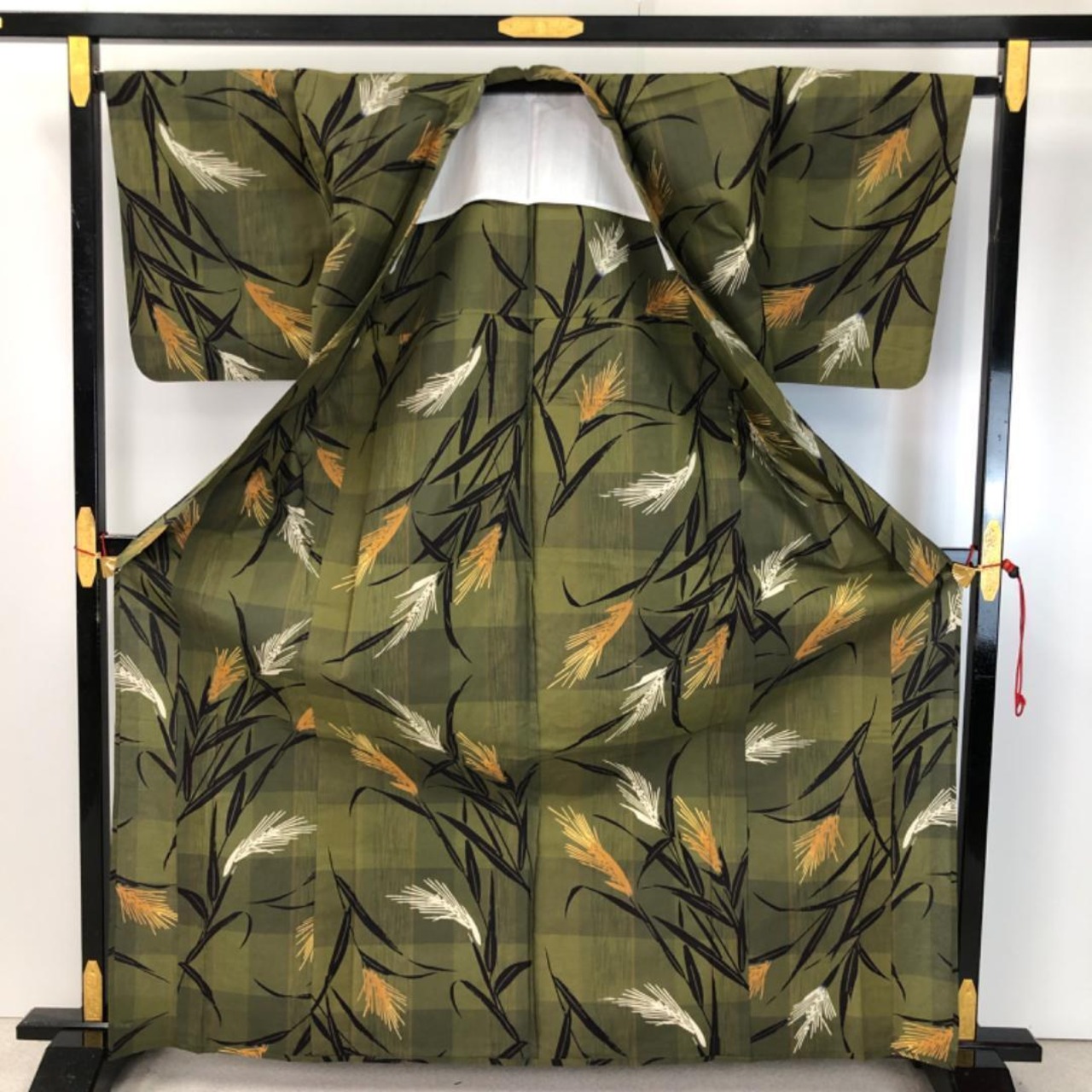 夏着物 浴衣 格子に芒 松葉鼠色 トールサイズ K-4996 着物 きもの kimono 和服 和装 中古 リサイクル着物 【送料無料】