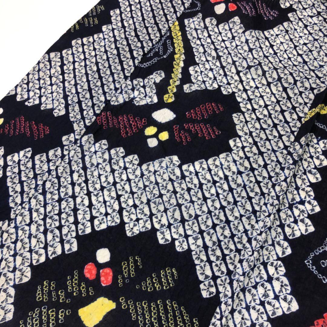 夏着物 浴衣 有松鳴海本絞り 抽象花模様 藍褐色 K-5053 着物 きもの kimono 和服 和装 中古 リサイクル着物 【送料無料】