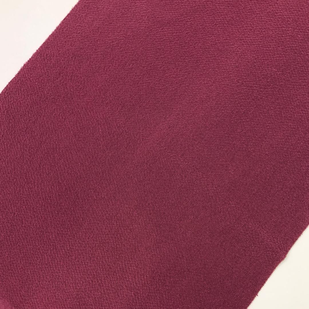 赤紫色のお色味に無地に素敵な縮緬のお品でございます。