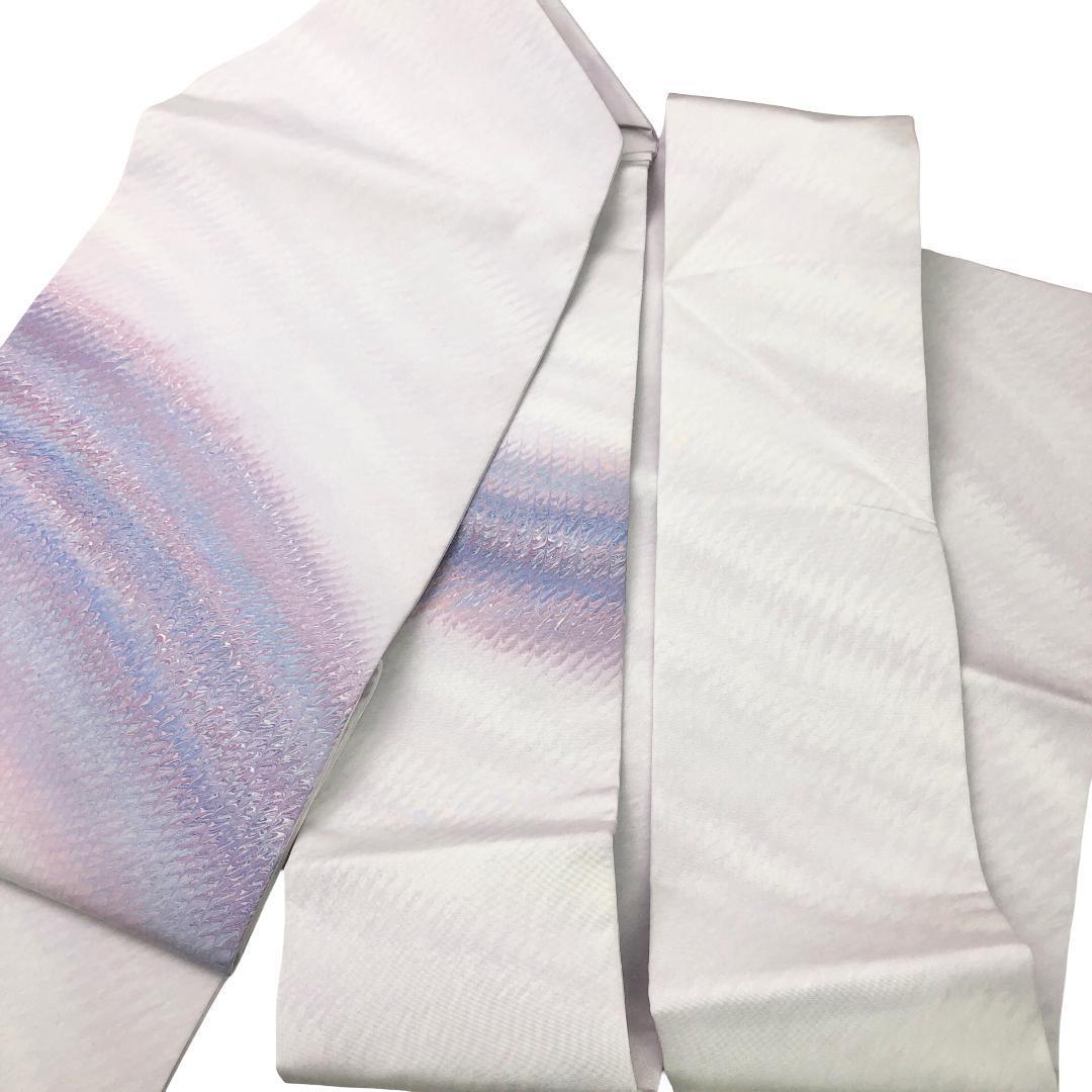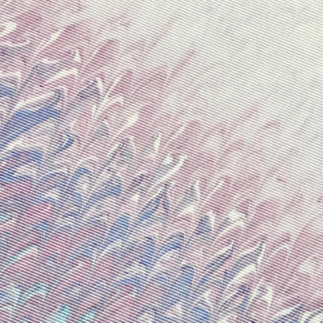 白菫色ベースの上品なお色味に美しい染模様がデザインされた雰囲気の良い素敵なお品でございます。