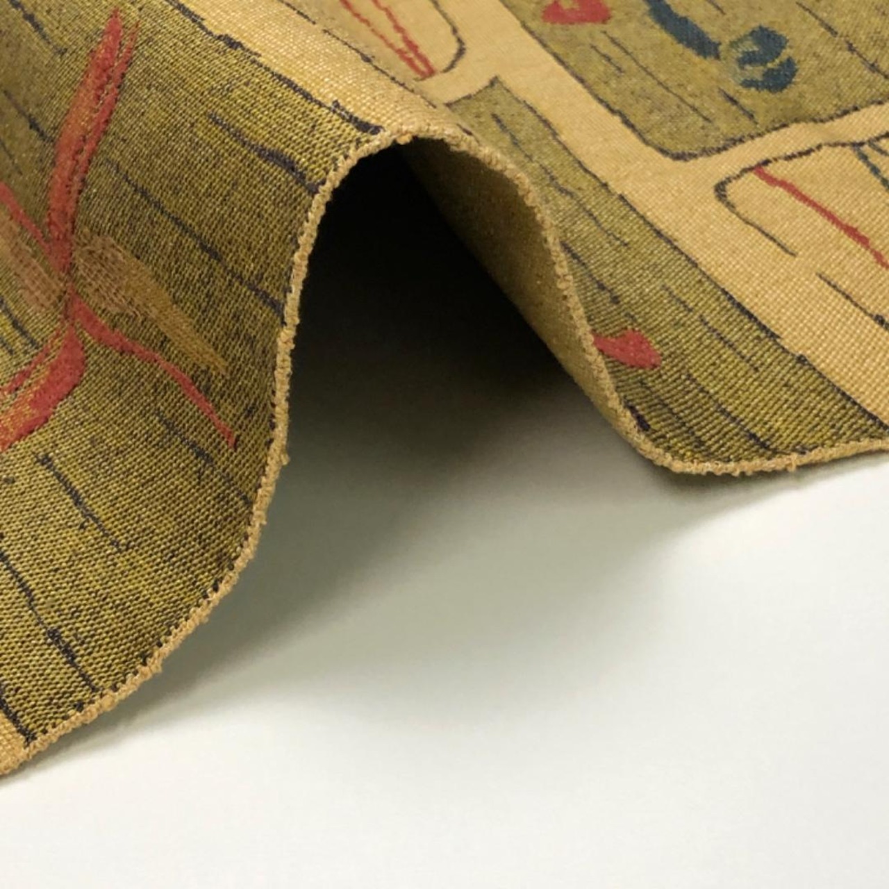 楊梅色のお色味に風車、抽象模様がデザインされた雰囲気の良い素敵な柄裄のお品でございます。