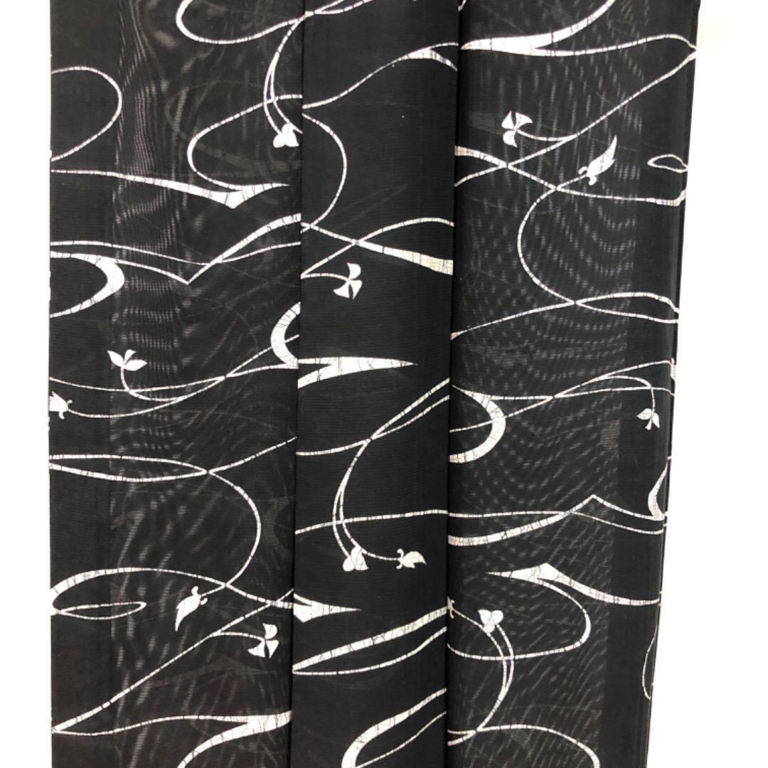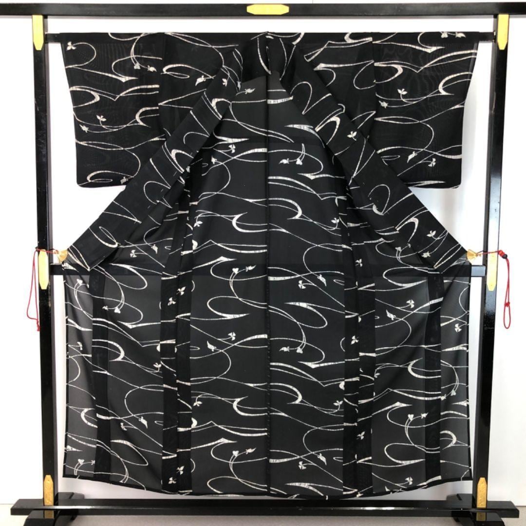 黒色のシックなお色味に抽象模様の柄裄がデザインされた素敵なお品でございます。
