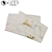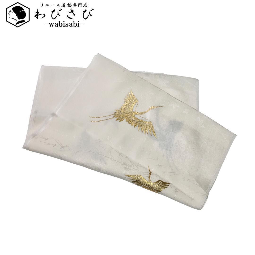 乳白色のお色味に飛翔鶴に寄せ柄の柄裄がデザインされた素敵なお品でございます。