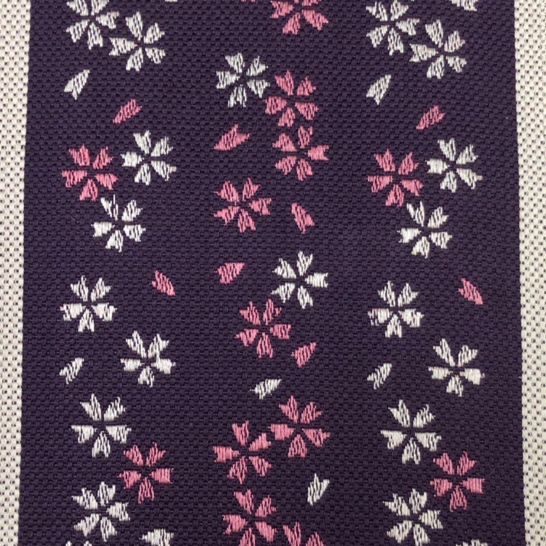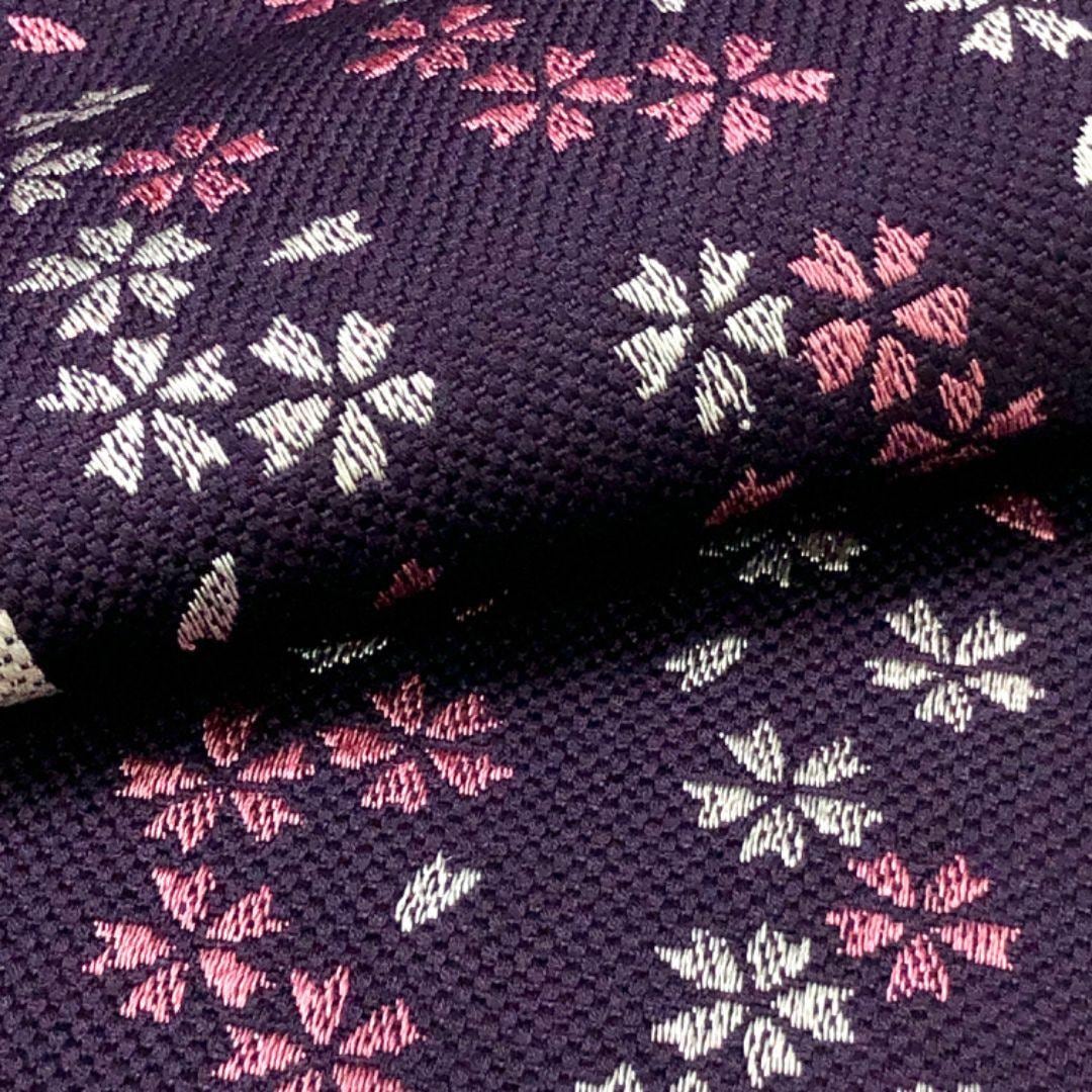 茄子紺色ベースのお色味に桜模様がデザインされた素敵な柄裄のお品でございます。