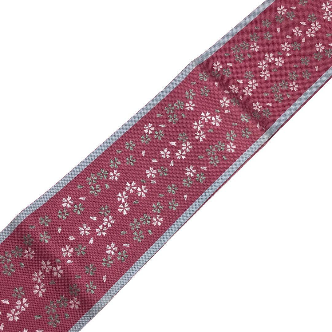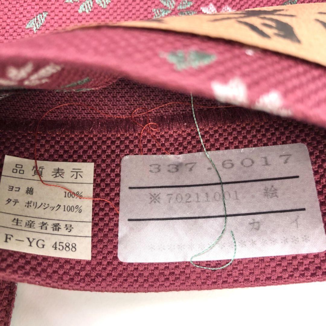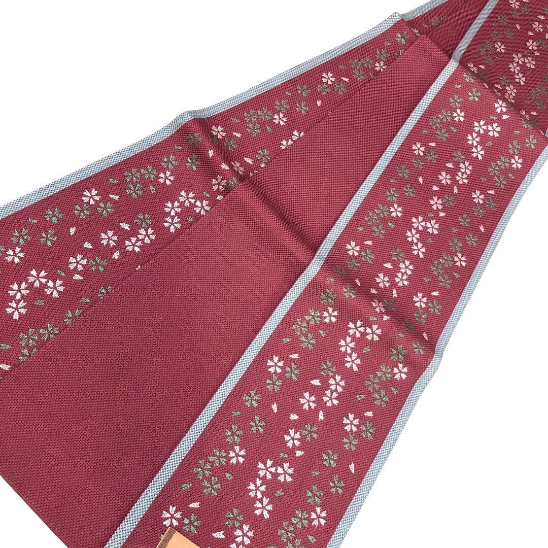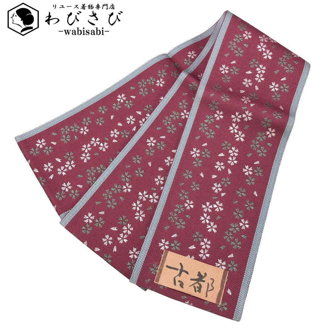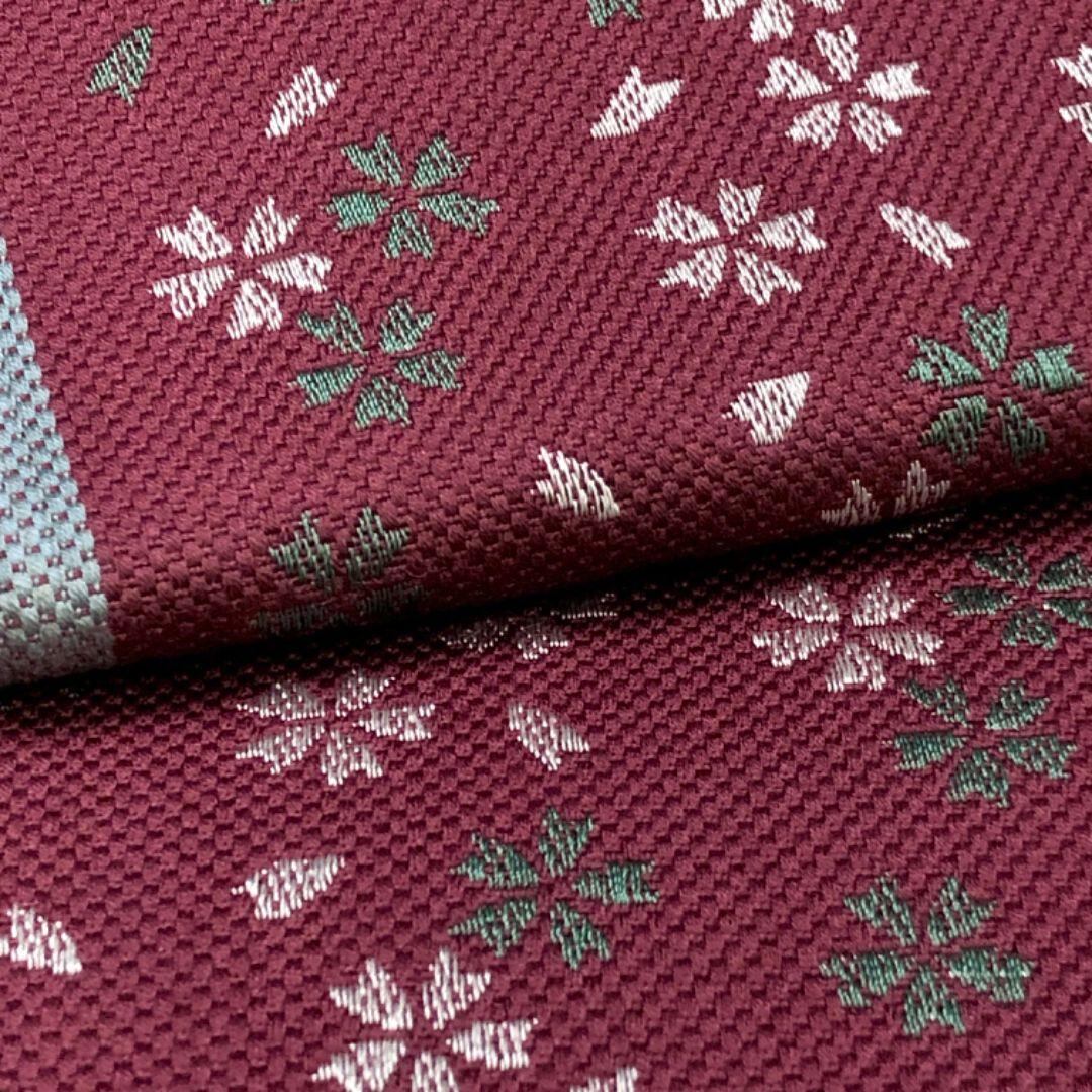 赤紫色ベースのお色味に桜模様がデザインされた素敵な柄裄のお品でございます。