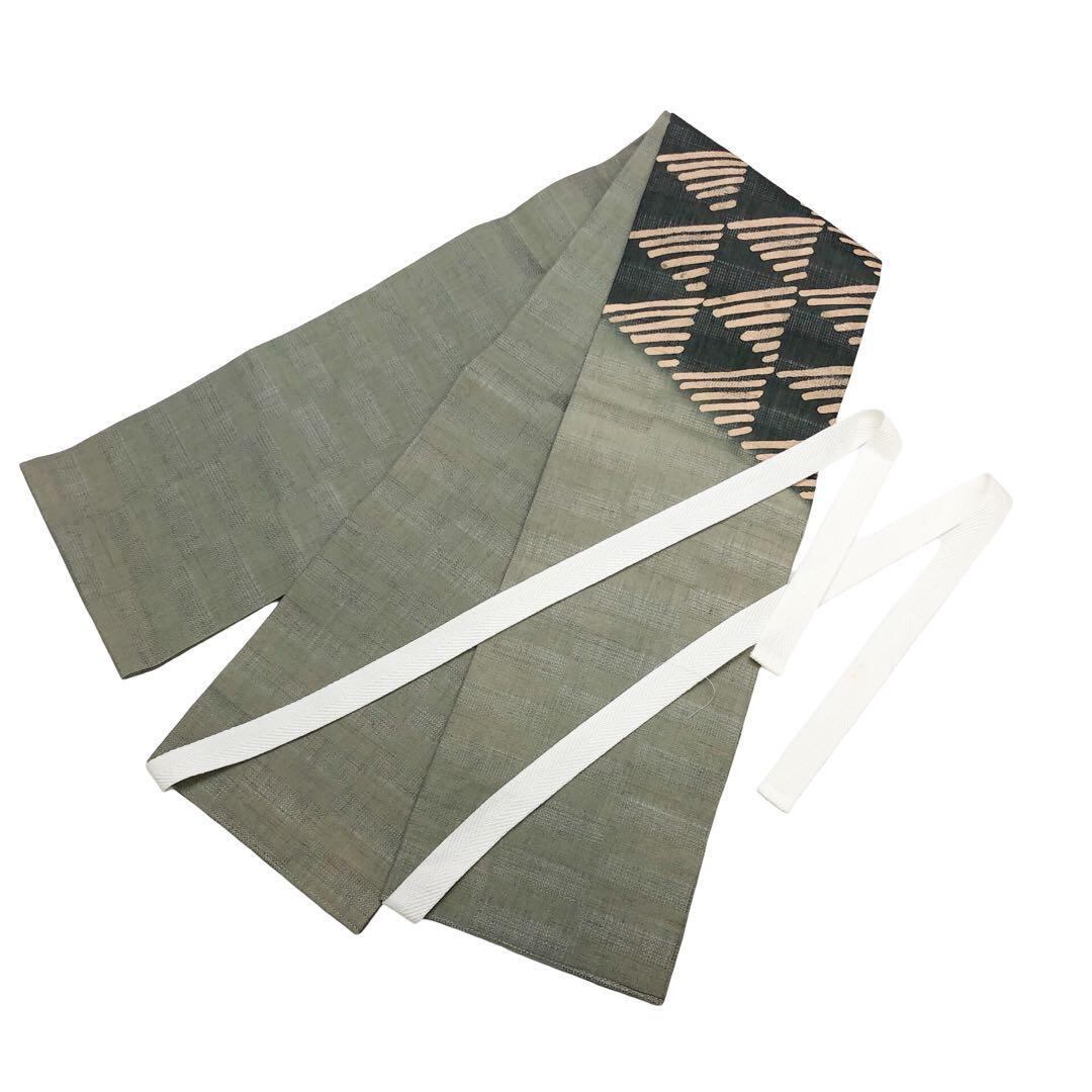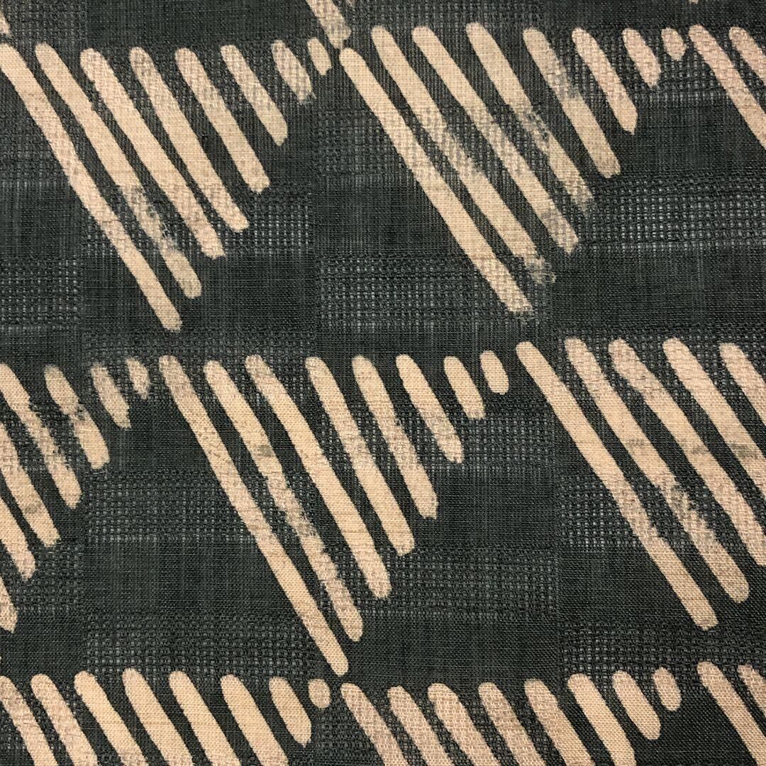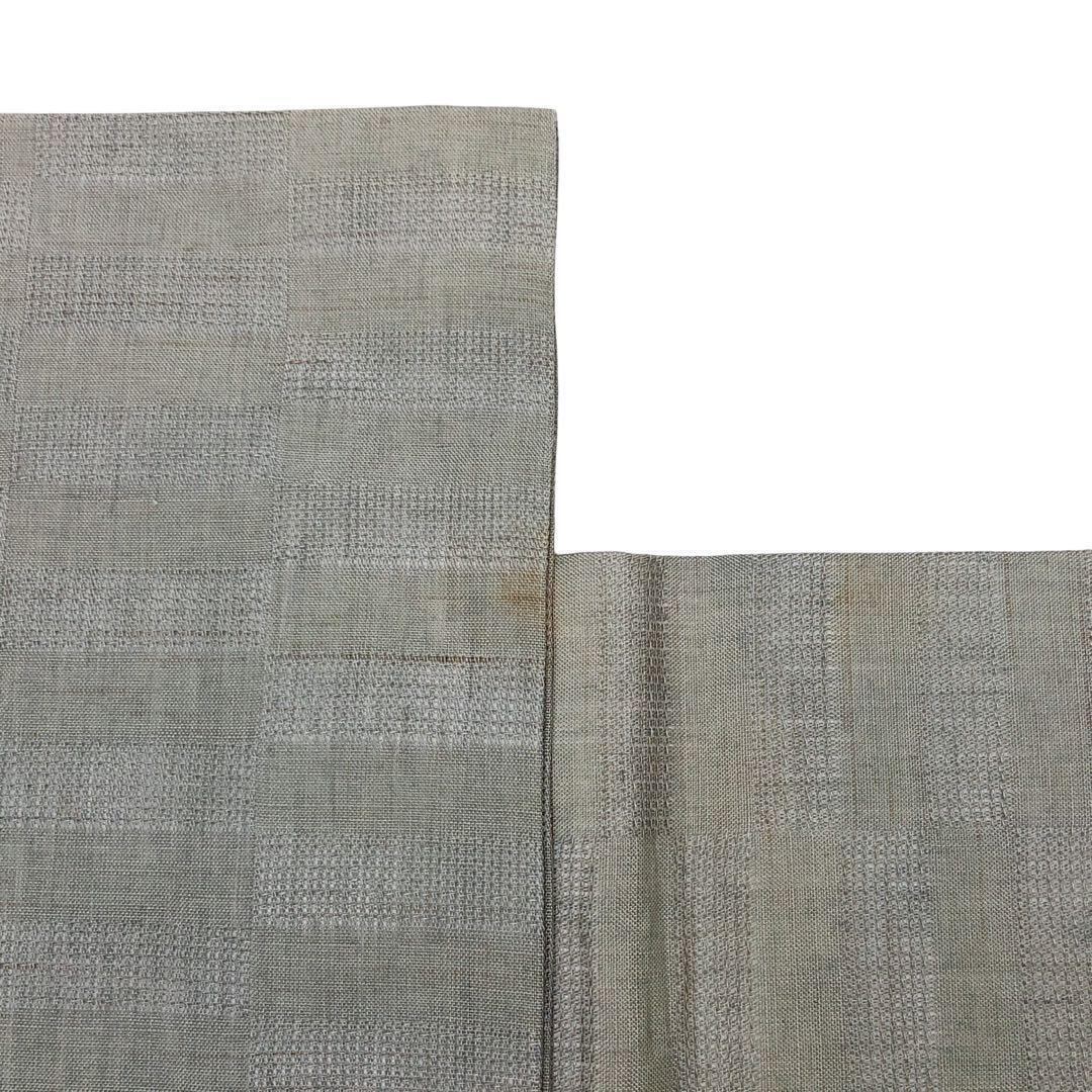 青柳鼠色のお色味ベースの紗紬に鱗模様の柄裄がデザインされた素敵なお品でございます。