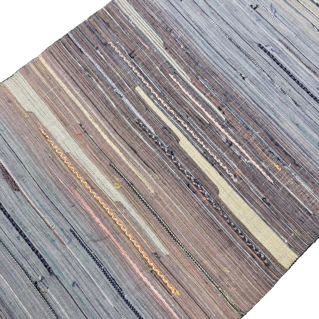 空鼠色ベースのお色の美しい横柄のグラデーションがデザインされた裂織の雰囲気の良い色彩の素敵なお品でございます。