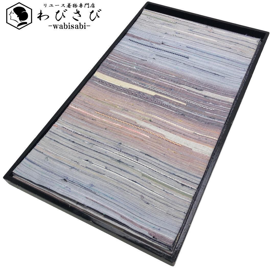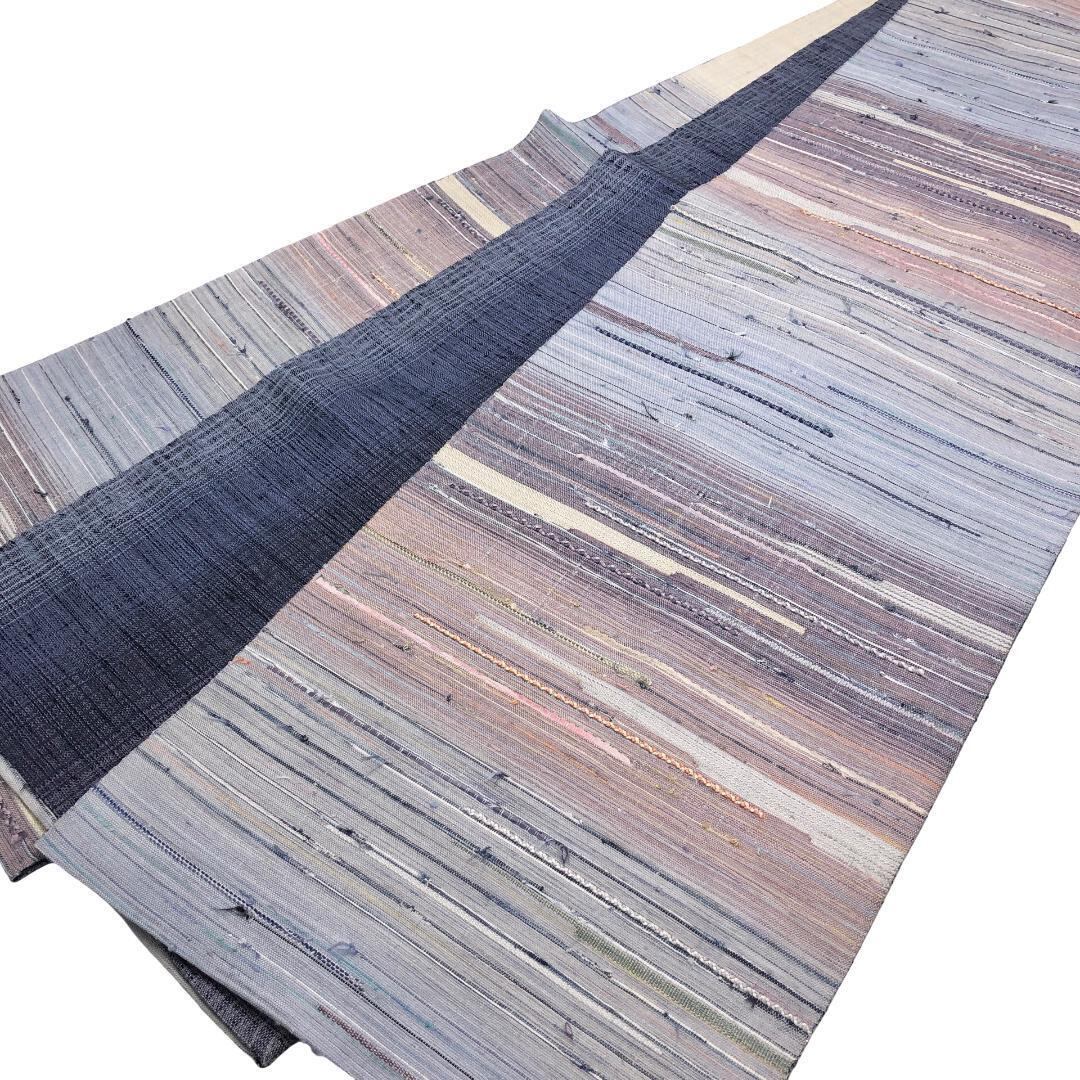 袋帯 裂織 美しいグラデーション 手織り 空鼠色 O-5280 着物 きもの kimono 和服 和装 中古 リサイクル着物 【送料無料】