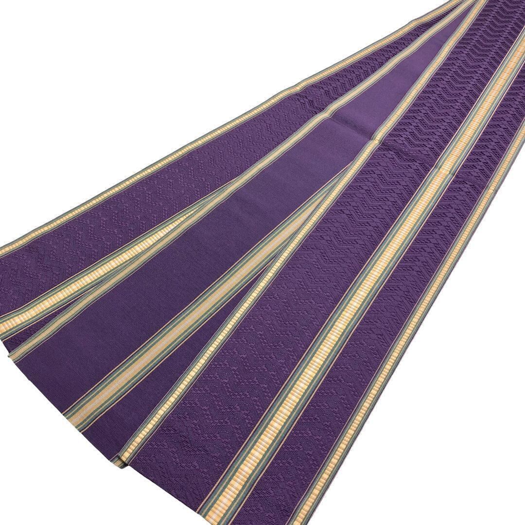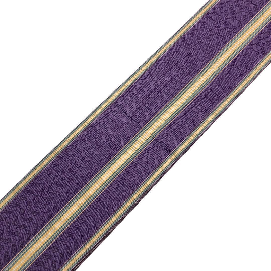 半幅帯 本場筑前博多織 縦縞模様 葡萄紫色 D-2094 着物 きもの kimono 和服 和装 中古 リサイクル着物 【送料無料】