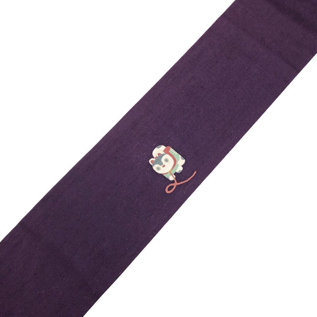 紫色の紬地に犬張子、手毬の柄裄がポイントでデザインされた雰囲気の良い素敵なお品でございます。