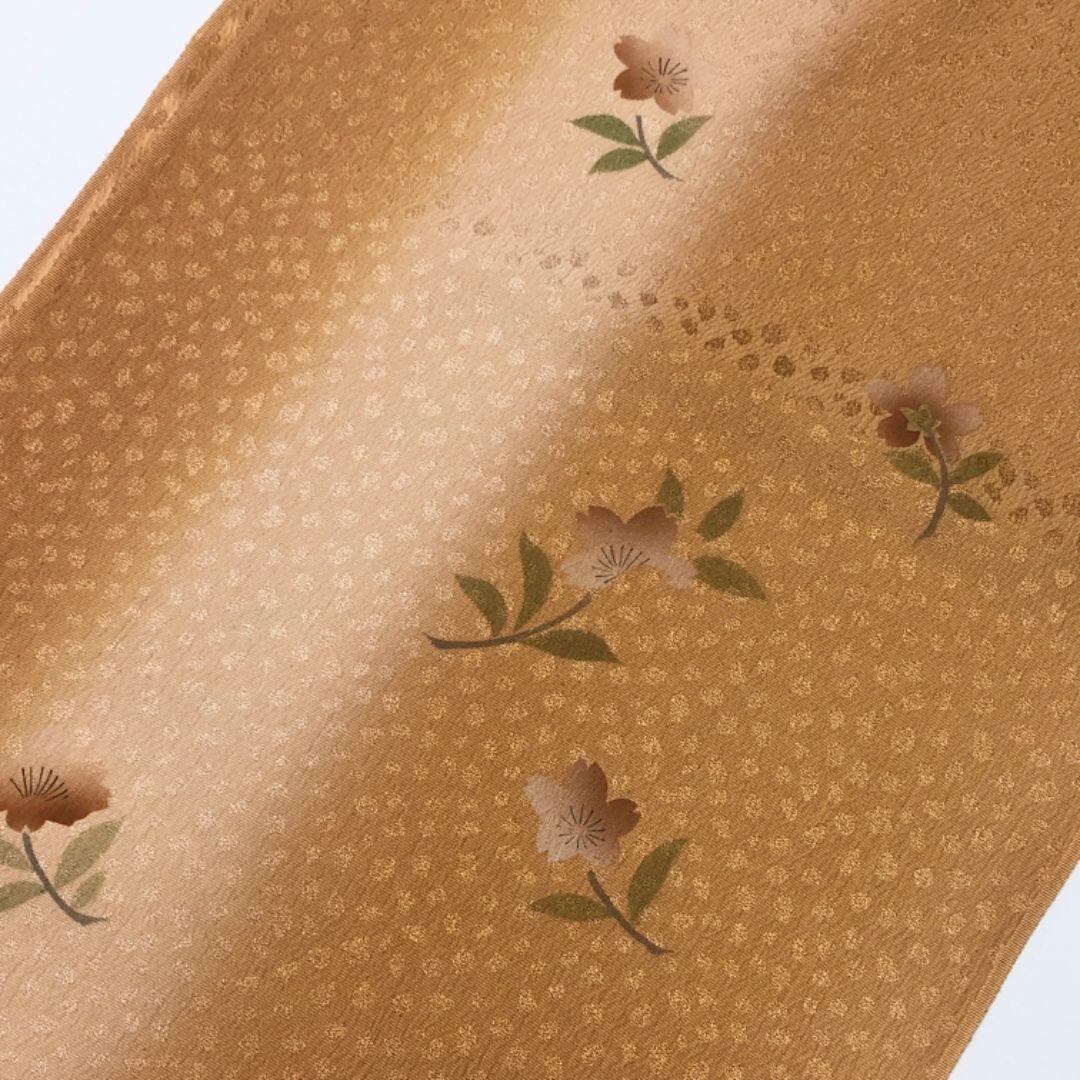 和装小物 帯揚げ 正絹 綸子 縦縞暈し模様 花模様 狐色 C-6098 着物 きもの kimono 和服 和装 中古 リサイクル着物 【送料無料】