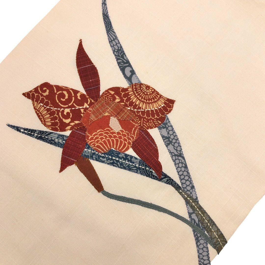 名古屋帯 紬 花模様 パッチワーク 乳白色 O-5304 着物 きもの kimono 和服 和装 中古 リサイクル着物 【送料無料】