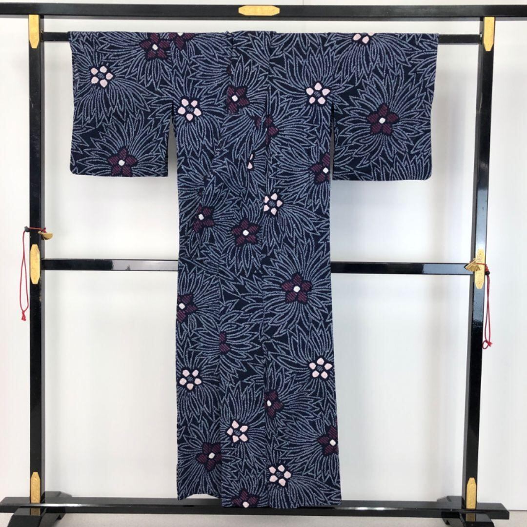 夏着物 浴衣 有松鳴海本絞り 花模様 藍色 K-5078 着物 きもの kimono 和服 和装 中古 リサイクル着物 【送料無料】