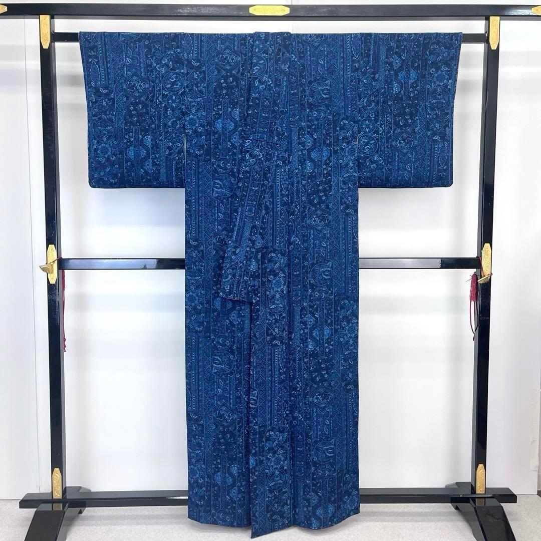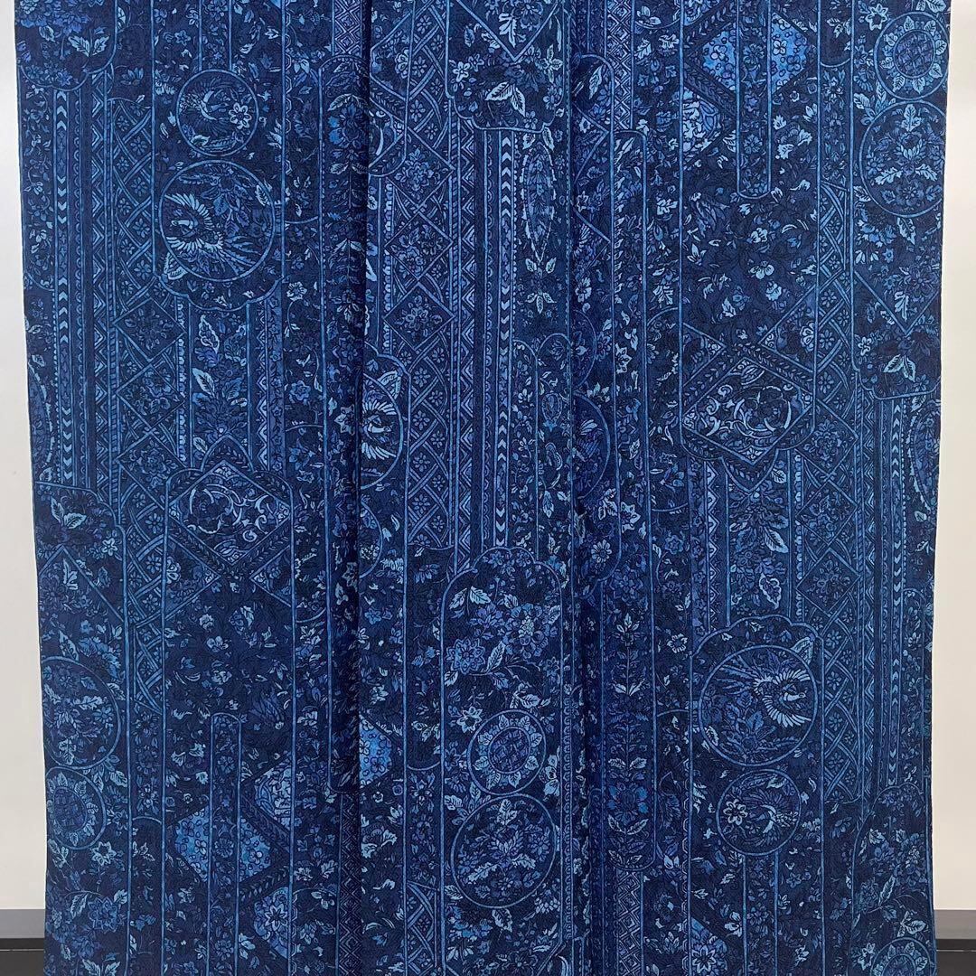 伝統工芸士中川勝夫、印度藍の美しい藍色、鳥に花模様の藍型染の素敵な柄裄のお品でございます。
