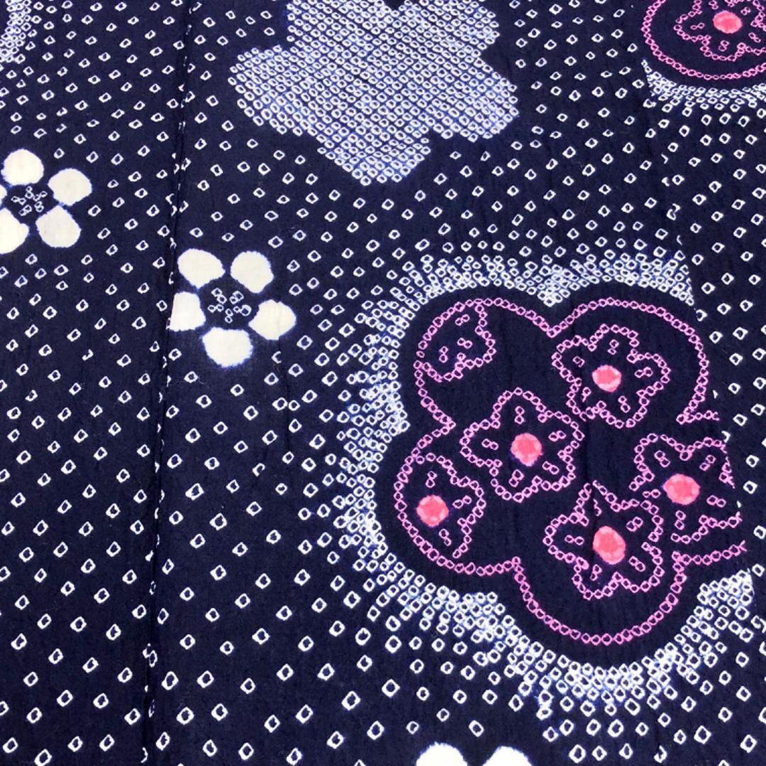 紫紺色のお色味に雰囲気の良い花柄模様がデザインされた素敵な柄裄のお品でございます。