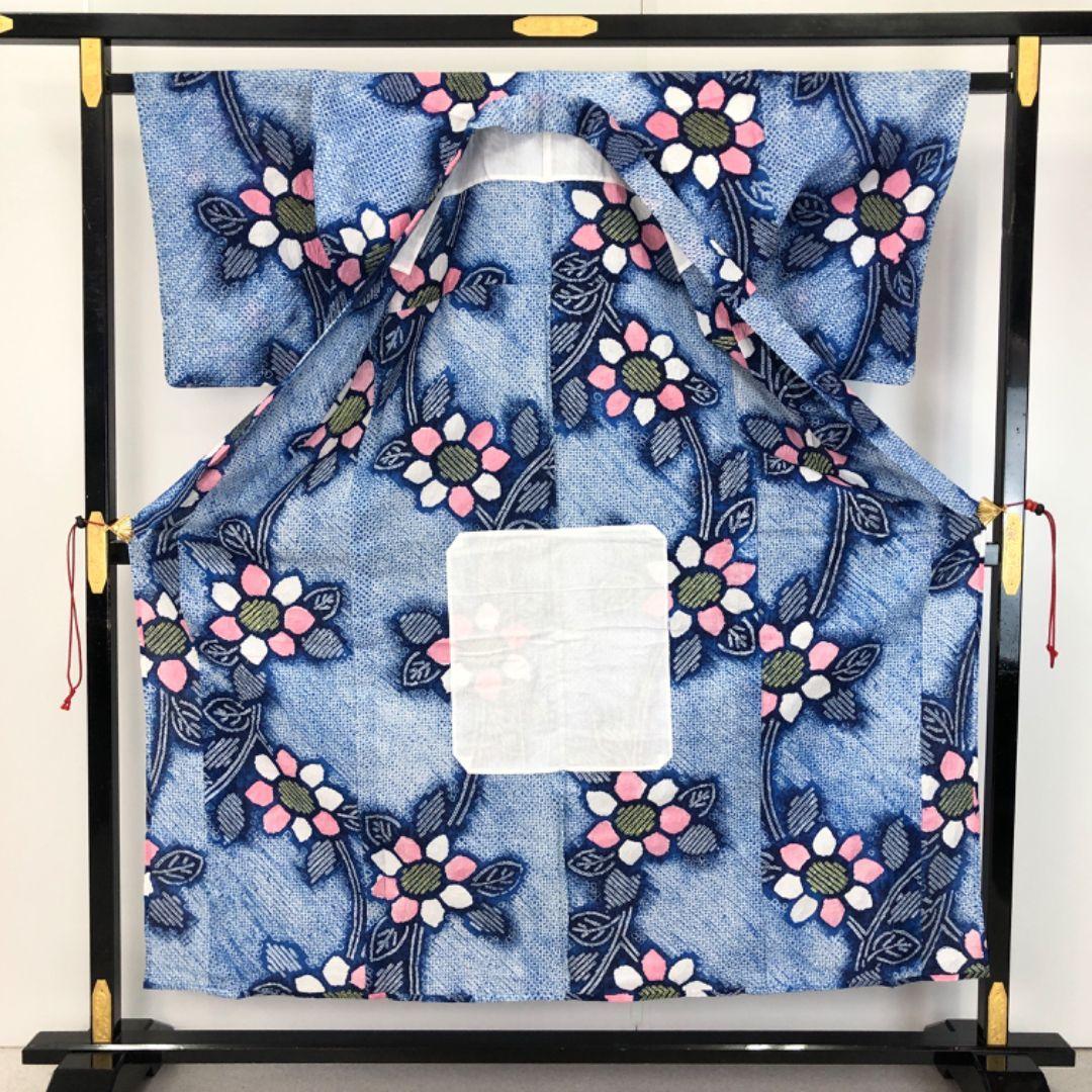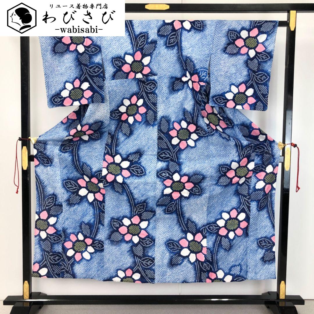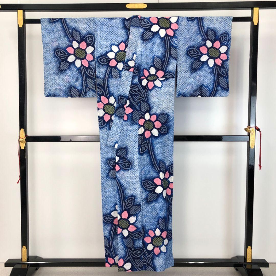 天色の雰囲気の良いお色味に花模様がデザインされた素敵な柄裄のお品でございます。