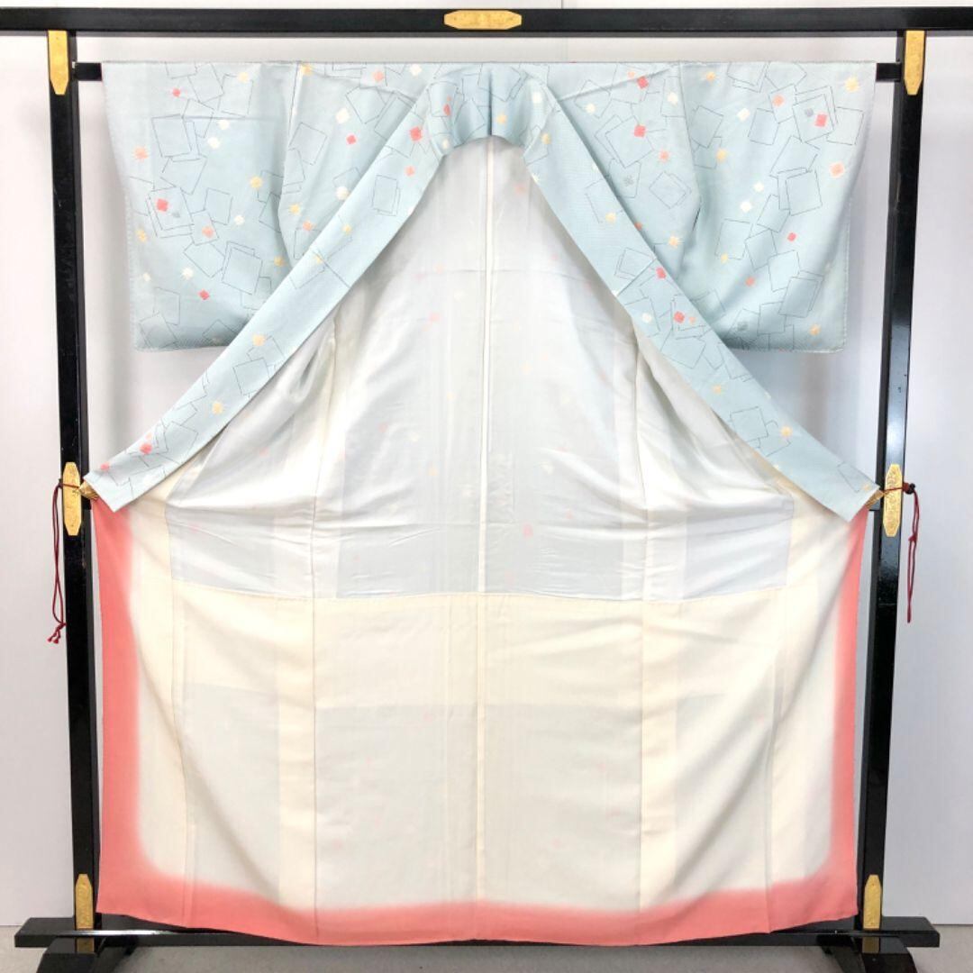 小紋 絞り柄 四角模様 青白磁色 K-5096 着物 きもの kimono 和服 和装 中古 リサイクル着物 【送料無料】