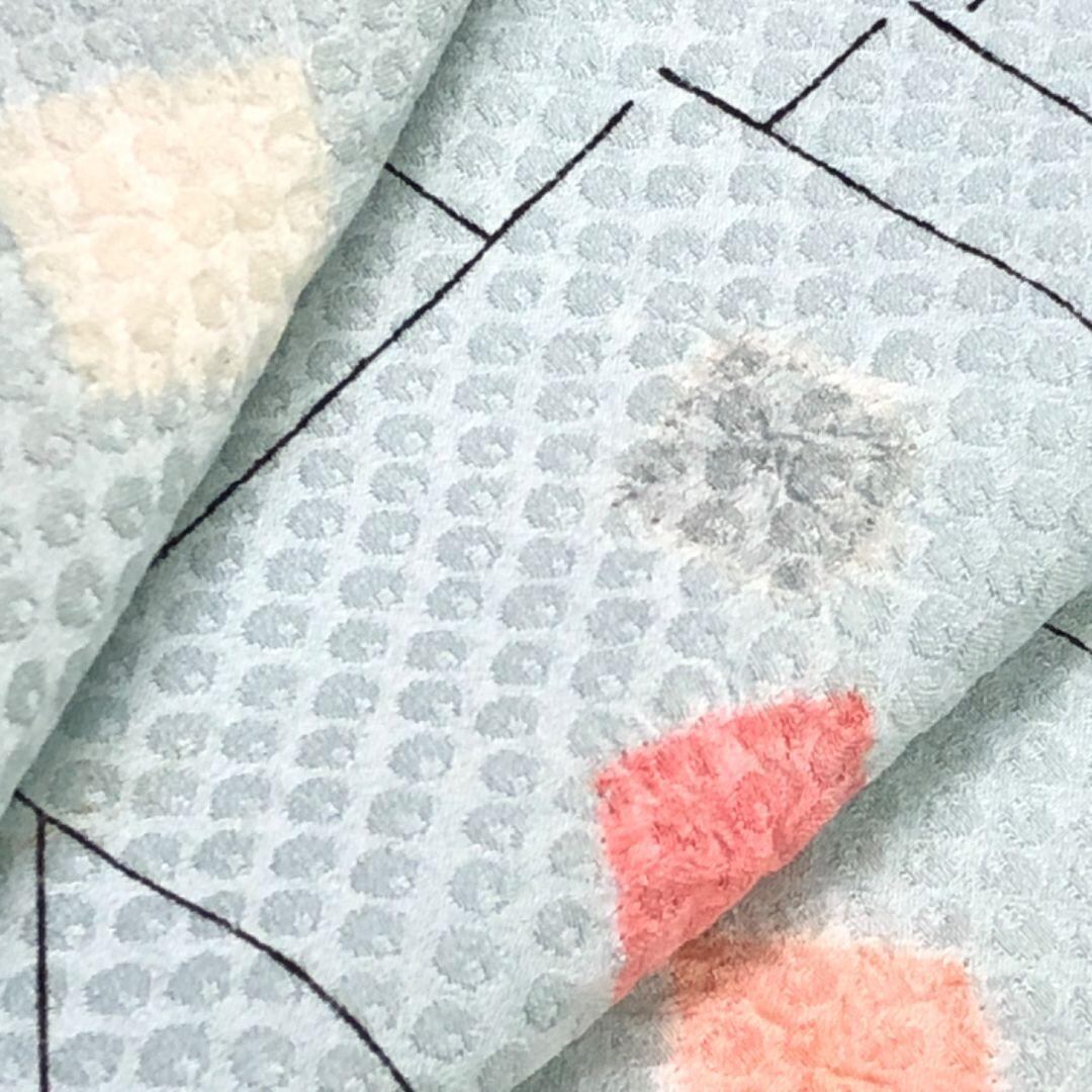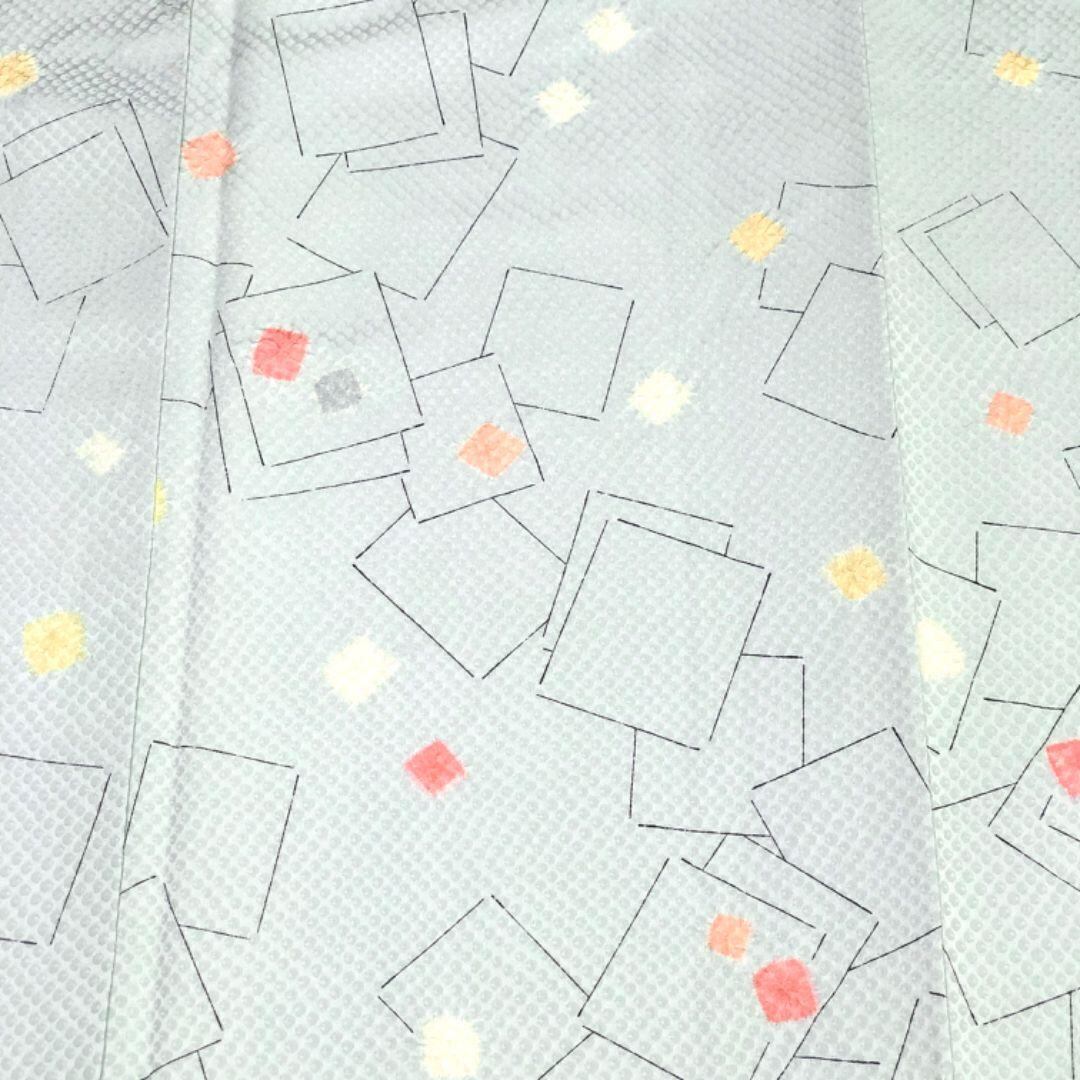 青白磁色の上品なお色味、絞り柄の四角模様がデザインされた素敵な柄裄のお品でございます。