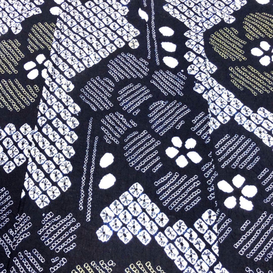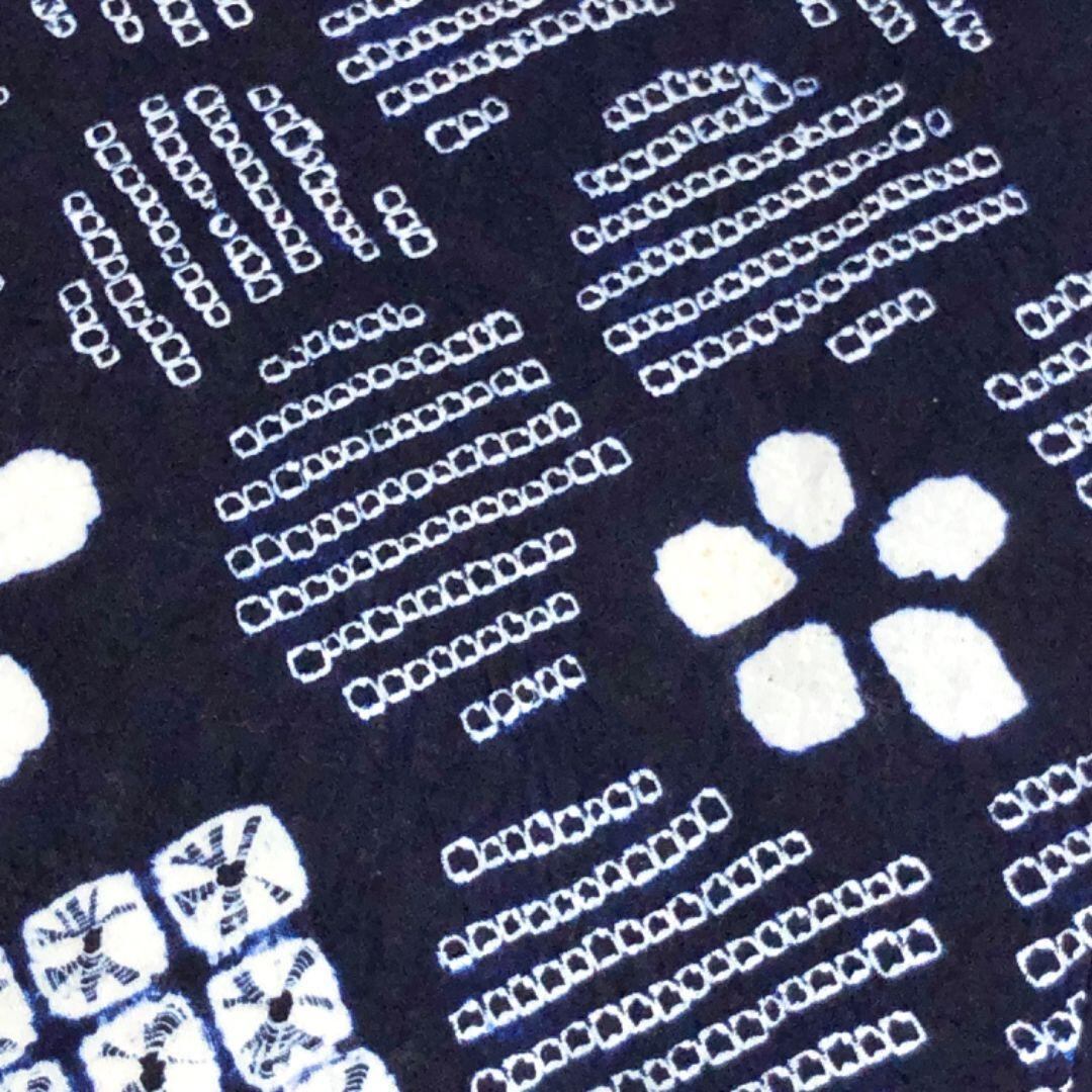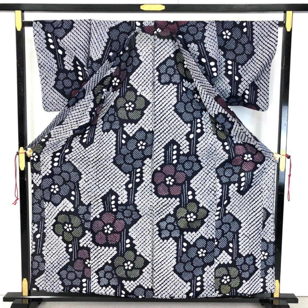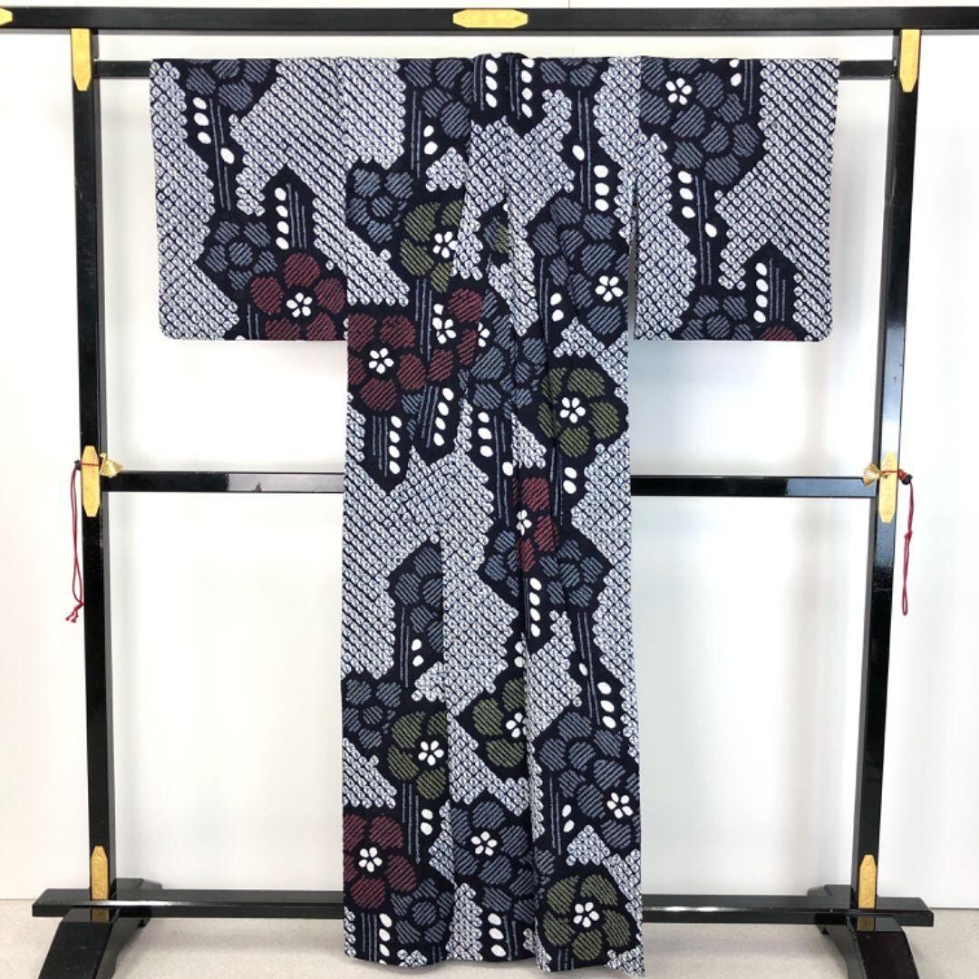 青褐色に花柄模様がデザインされた素敵な柄裄のお品でございます。