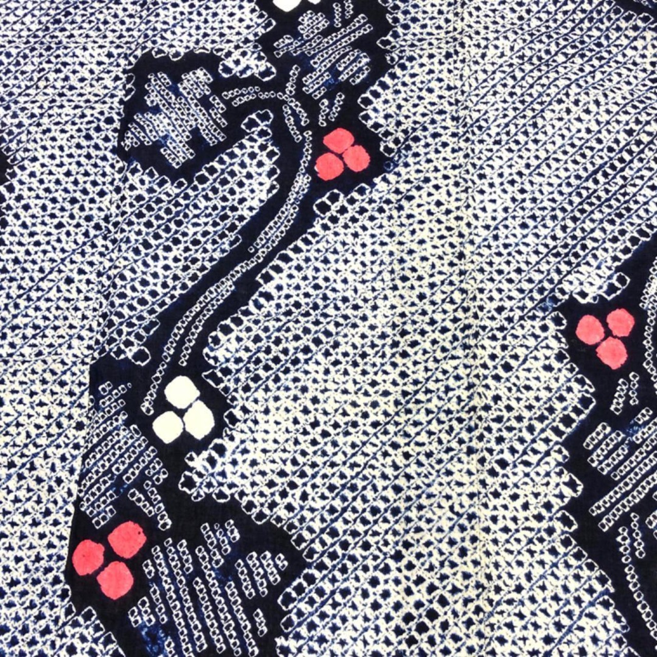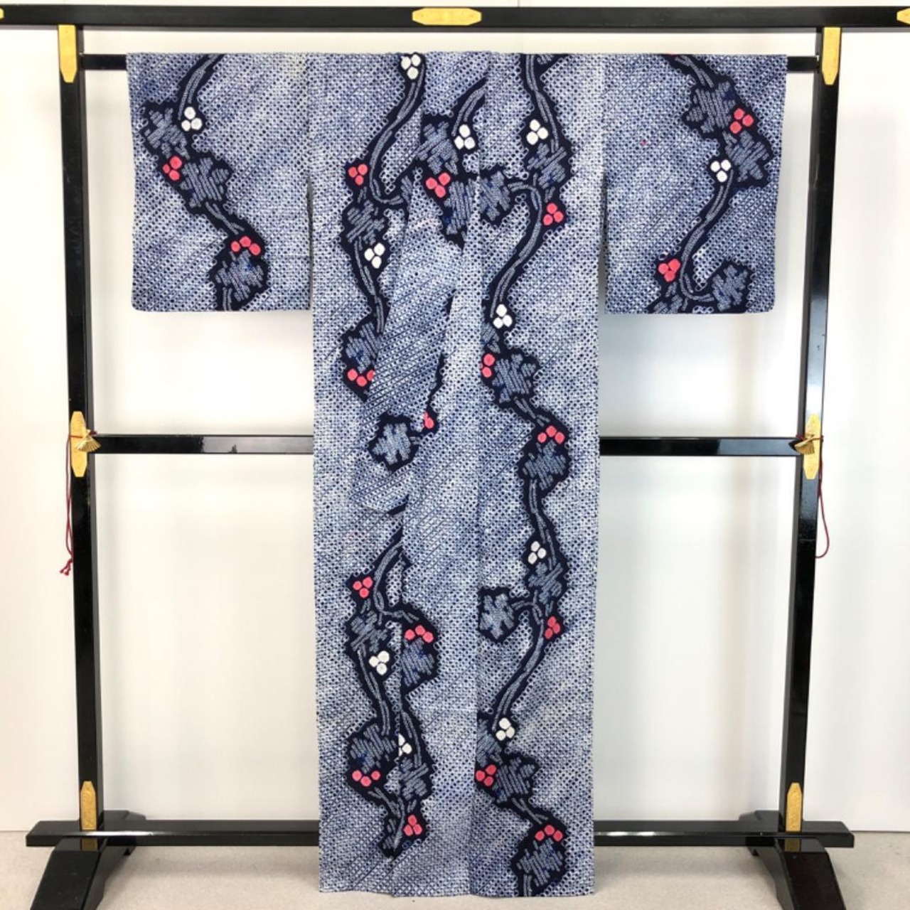 夏着物 浴衣 有松鳴海本絞り 葉模様 紺色 K-5094 着物 きもの kimono 和服 和装 中古 リサイクル着物 【送料無料】