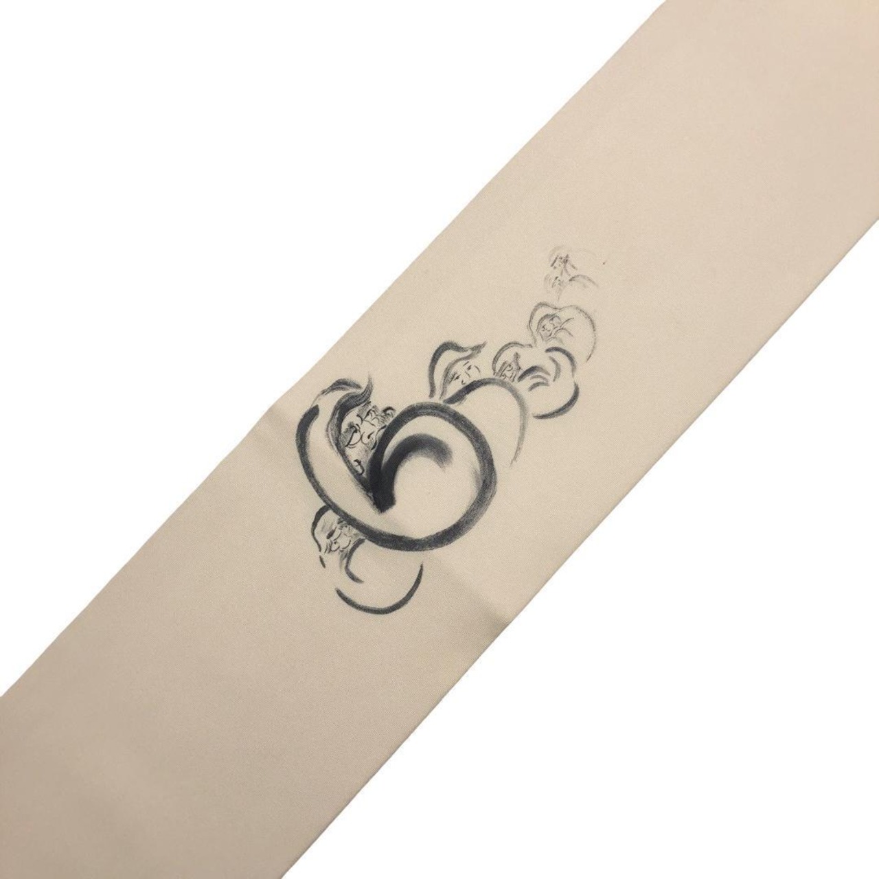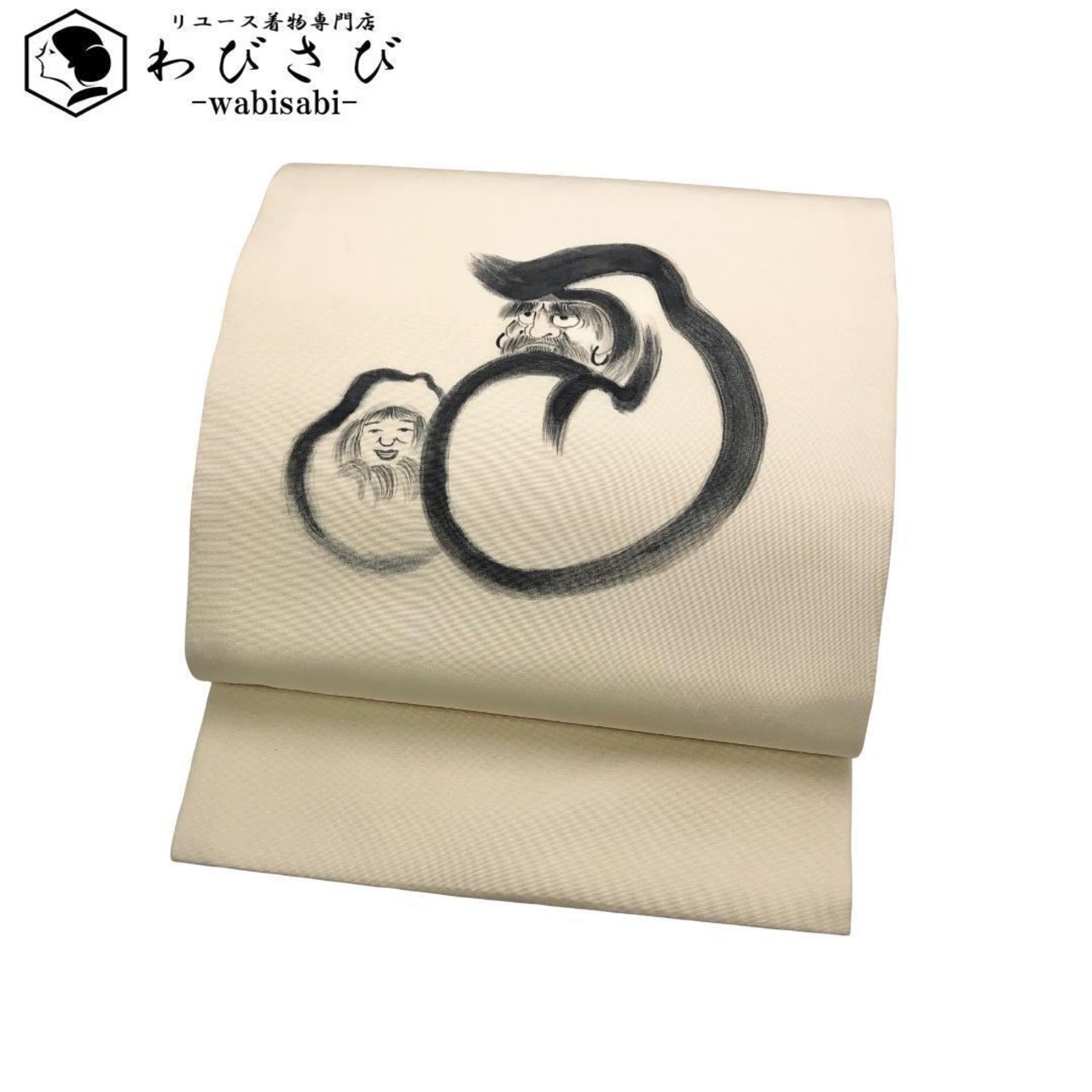 名古屋帯 塩瀬 墨描き 達磨柄 だるま 生成色 O-5338 着物 きもの kimono 和服 和装 中古 リサイクル着物 【送料無料】