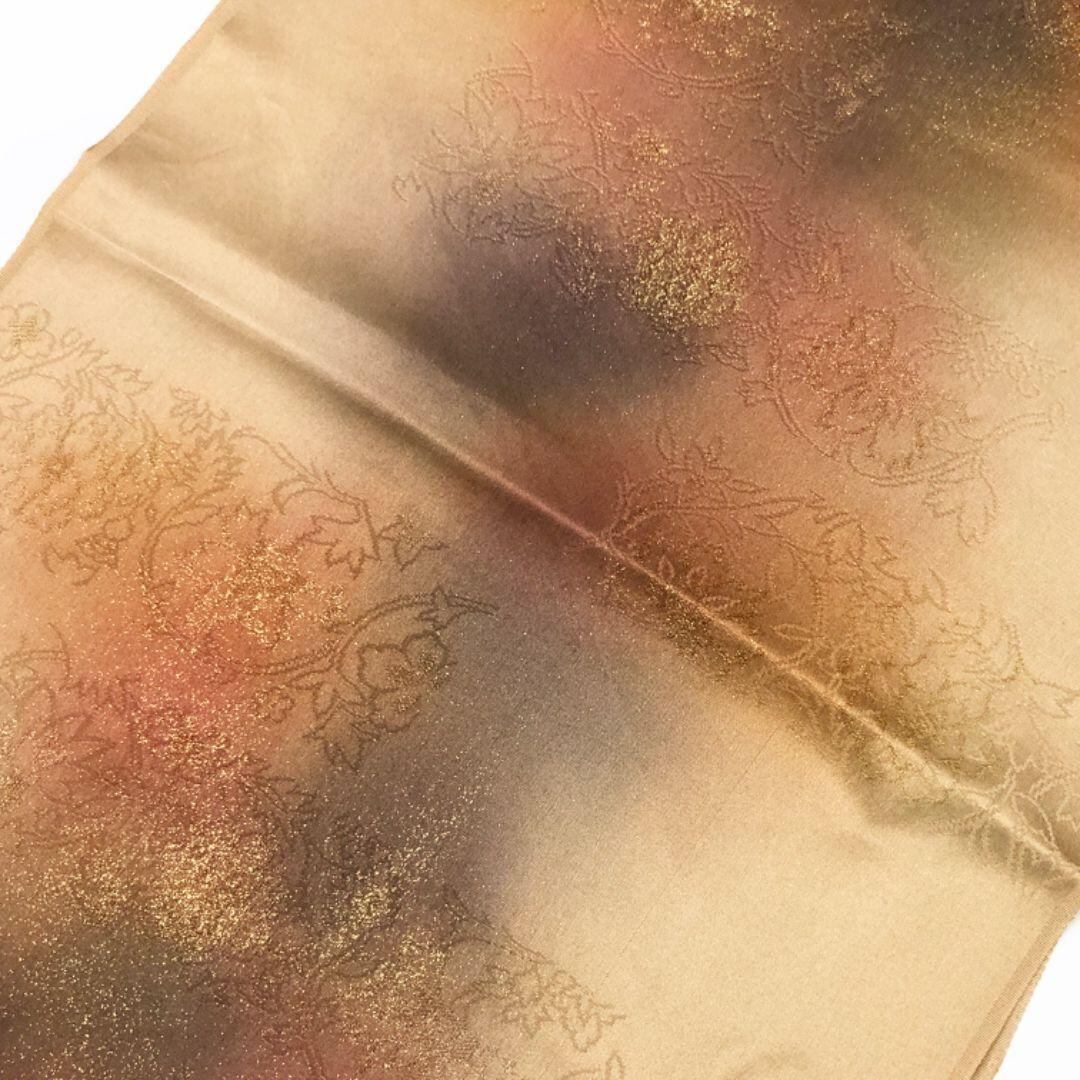 和装小物 帯揚げ 正絹 綸子 花唐草模様 暈し 香色 金糸 C-6172 着物 きもの kimono 和服 和装 中古 リサイクル着物 【送料無料】