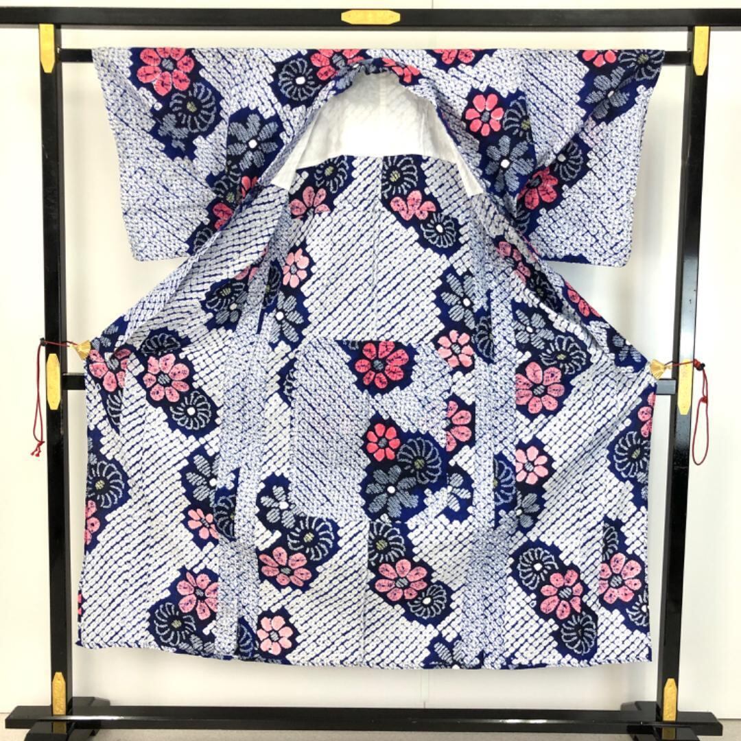 瑠璃色のお色味に花柄模様がデザインされた素敵な柄裄のお品でございます。